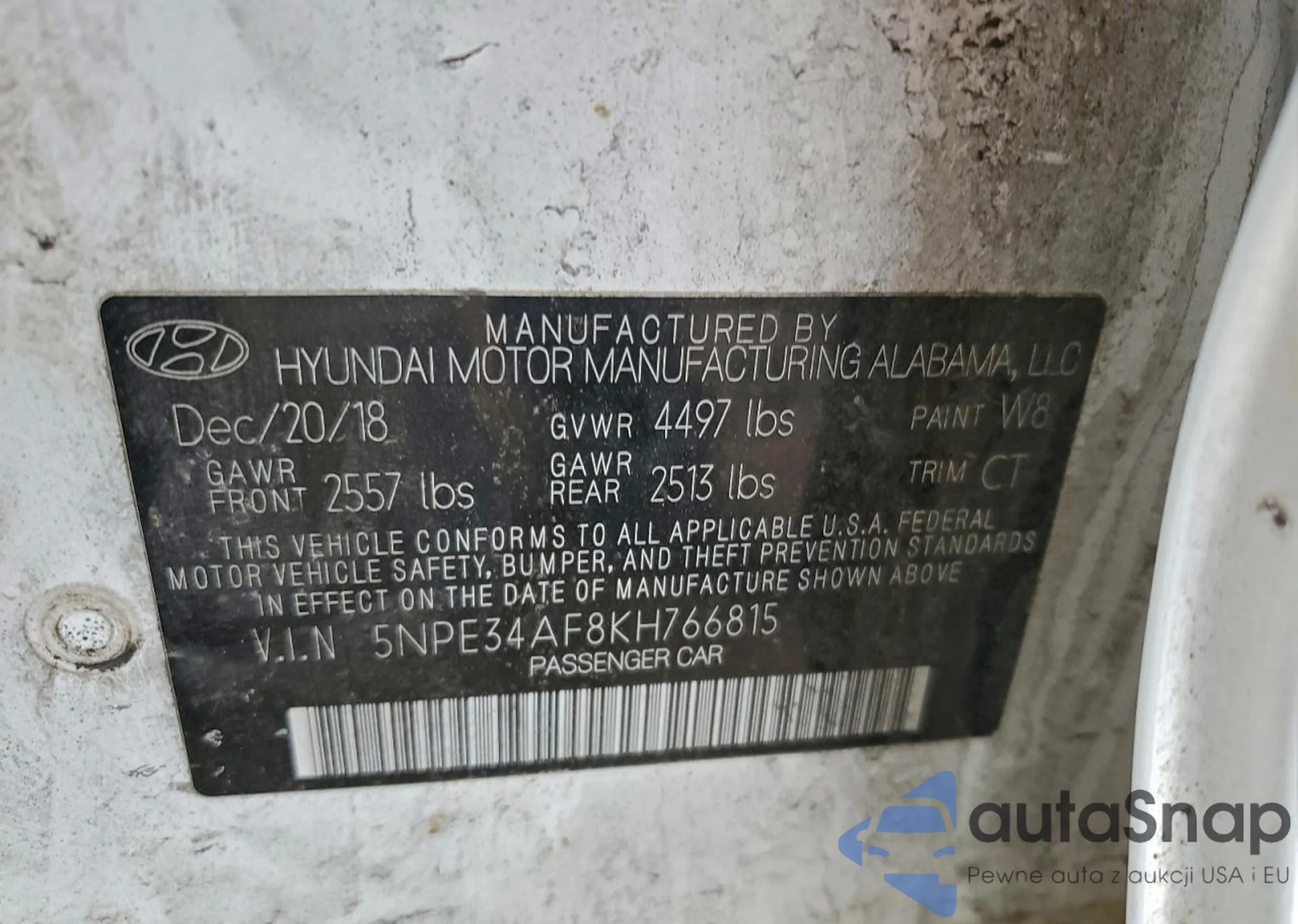 The car Hyundai Sonata 2019 (VIN 5NPE34AF8KH766815) has not been auctioned before. The documents are clean, and the mileage matches or is below the market average. Sold by an insurance company – we recommend purchase. Delivery to the port will take approx. 6–8 weeks.