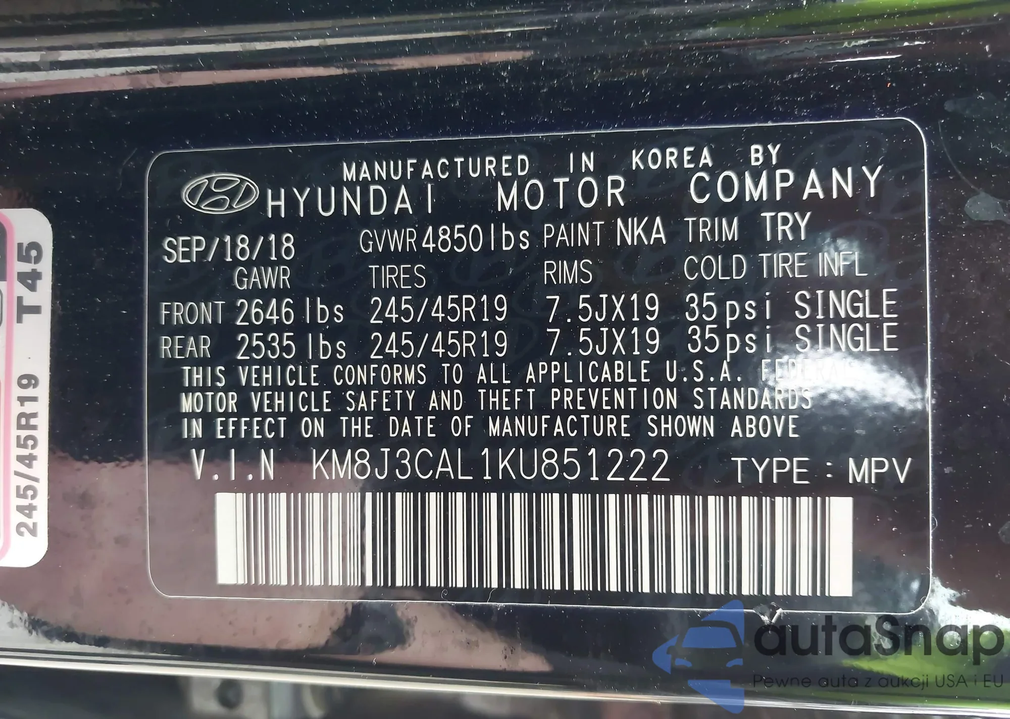 VIN: KM8J3CAL1KU851222
