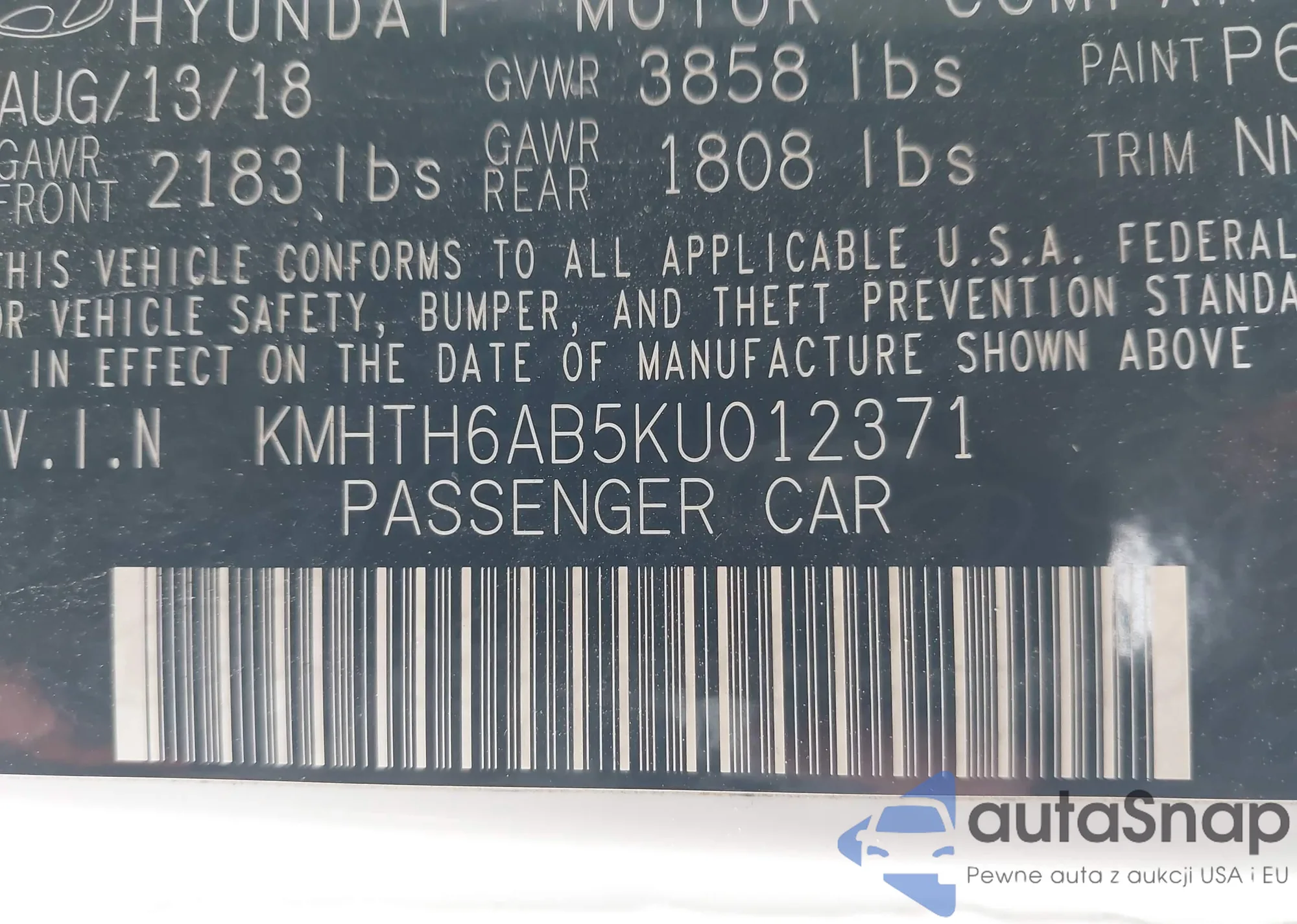 • VIN: KMHTH6AB5KU012371