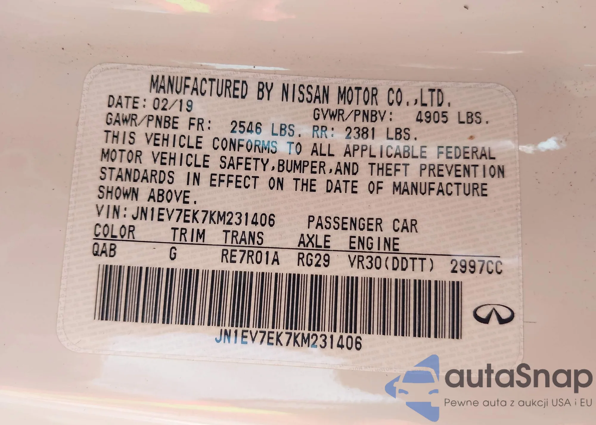 VIN: JN1EV7EK7KM231406
