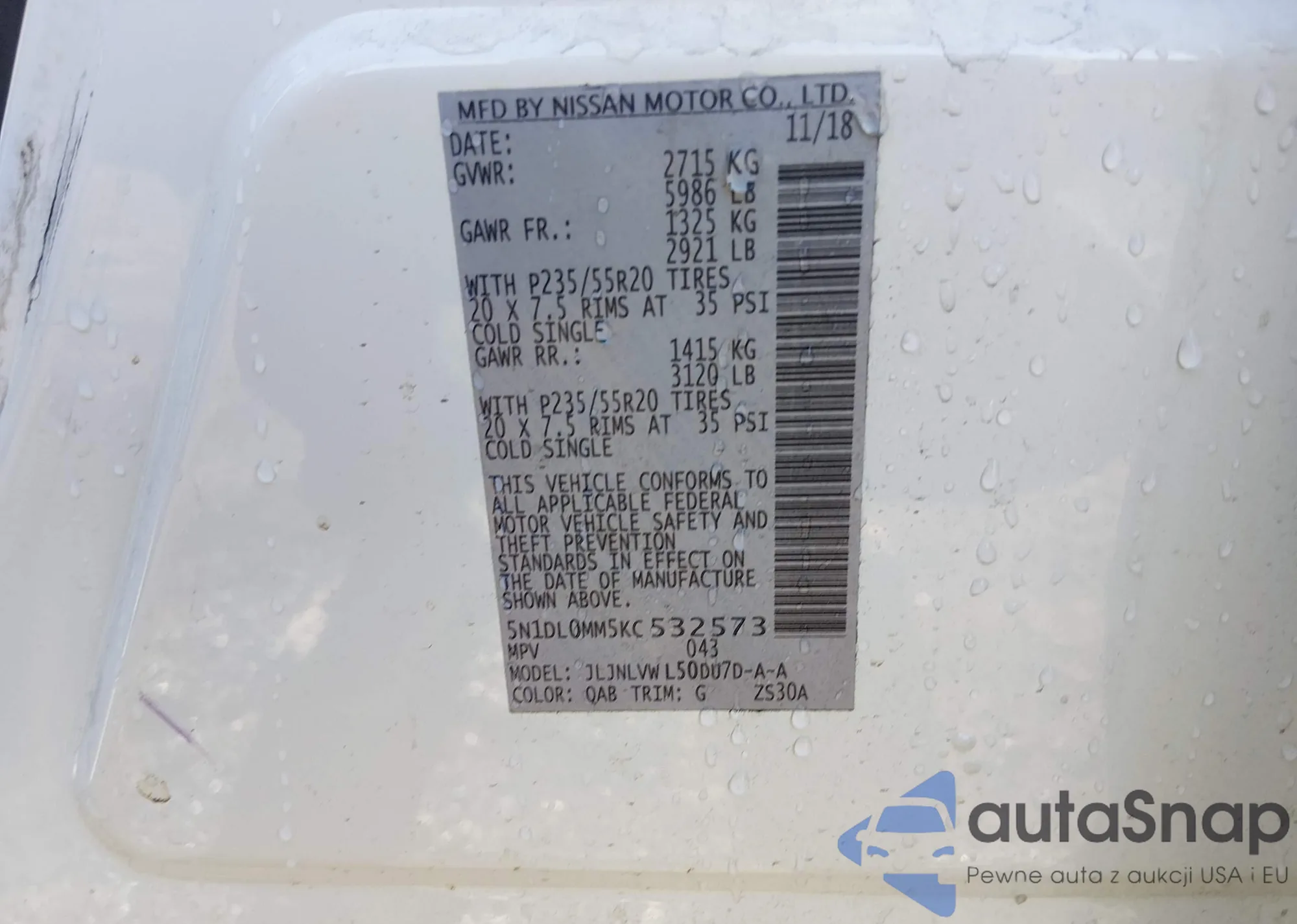 • VIN: 5N1DL0MM5KC532573