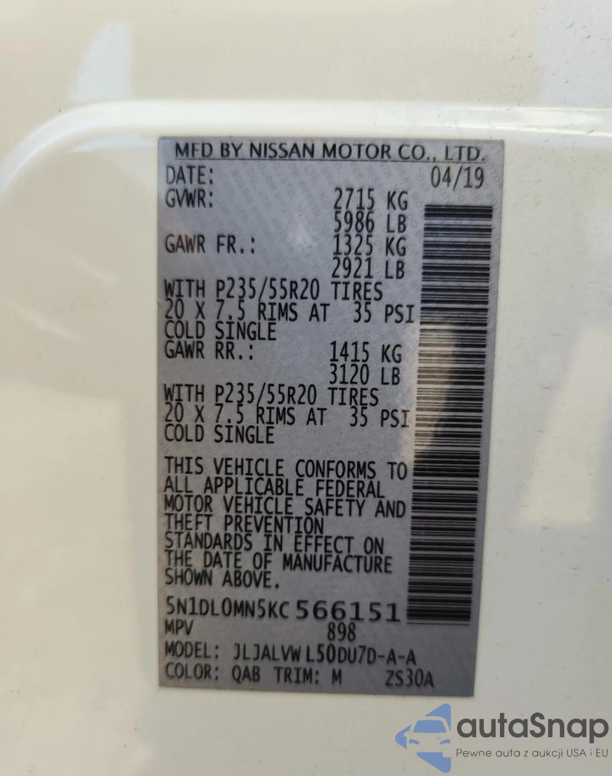 VIN: 5N1DL0MN5KC566151