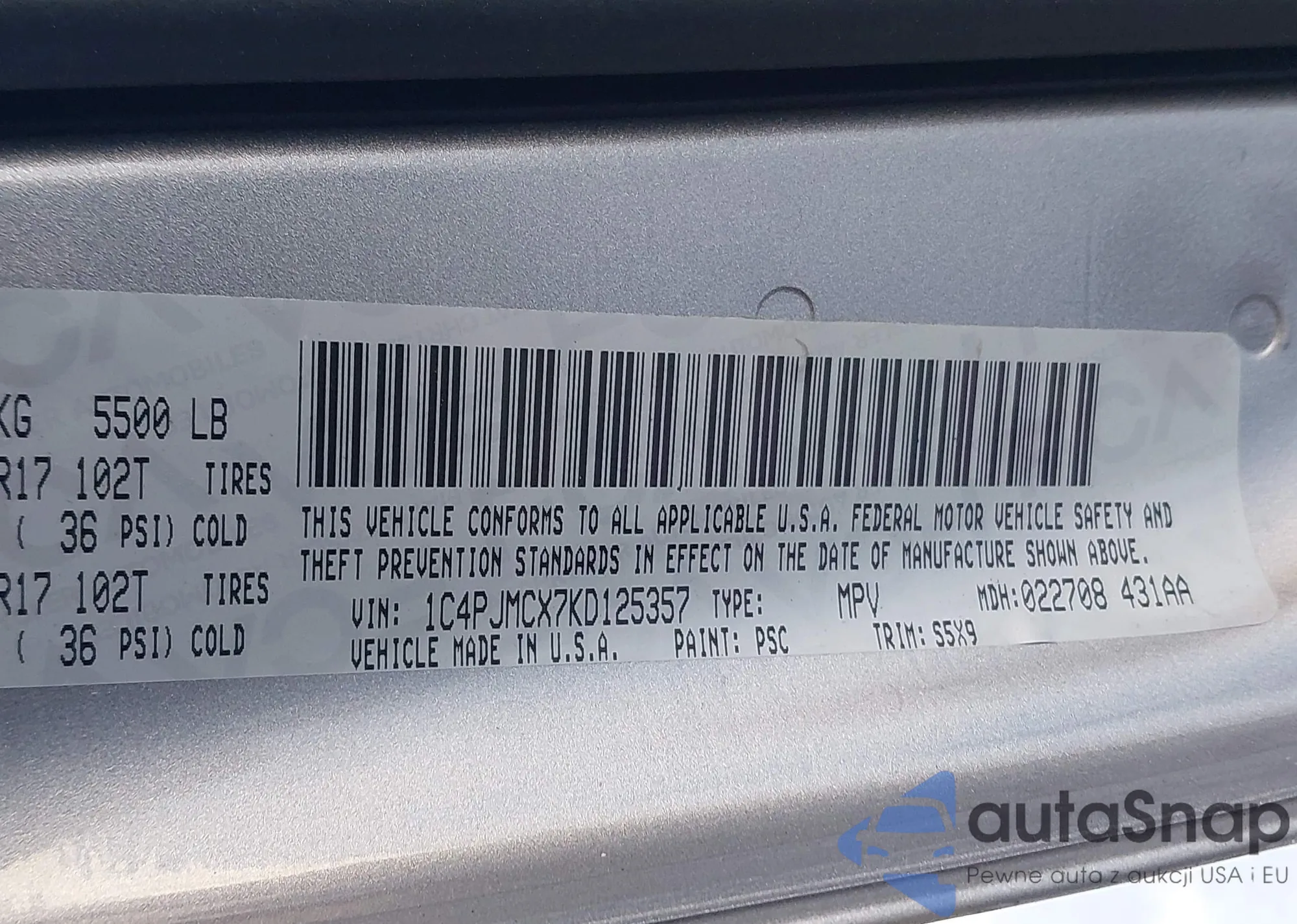 VIN: 1C4PJMCX7KD125357
