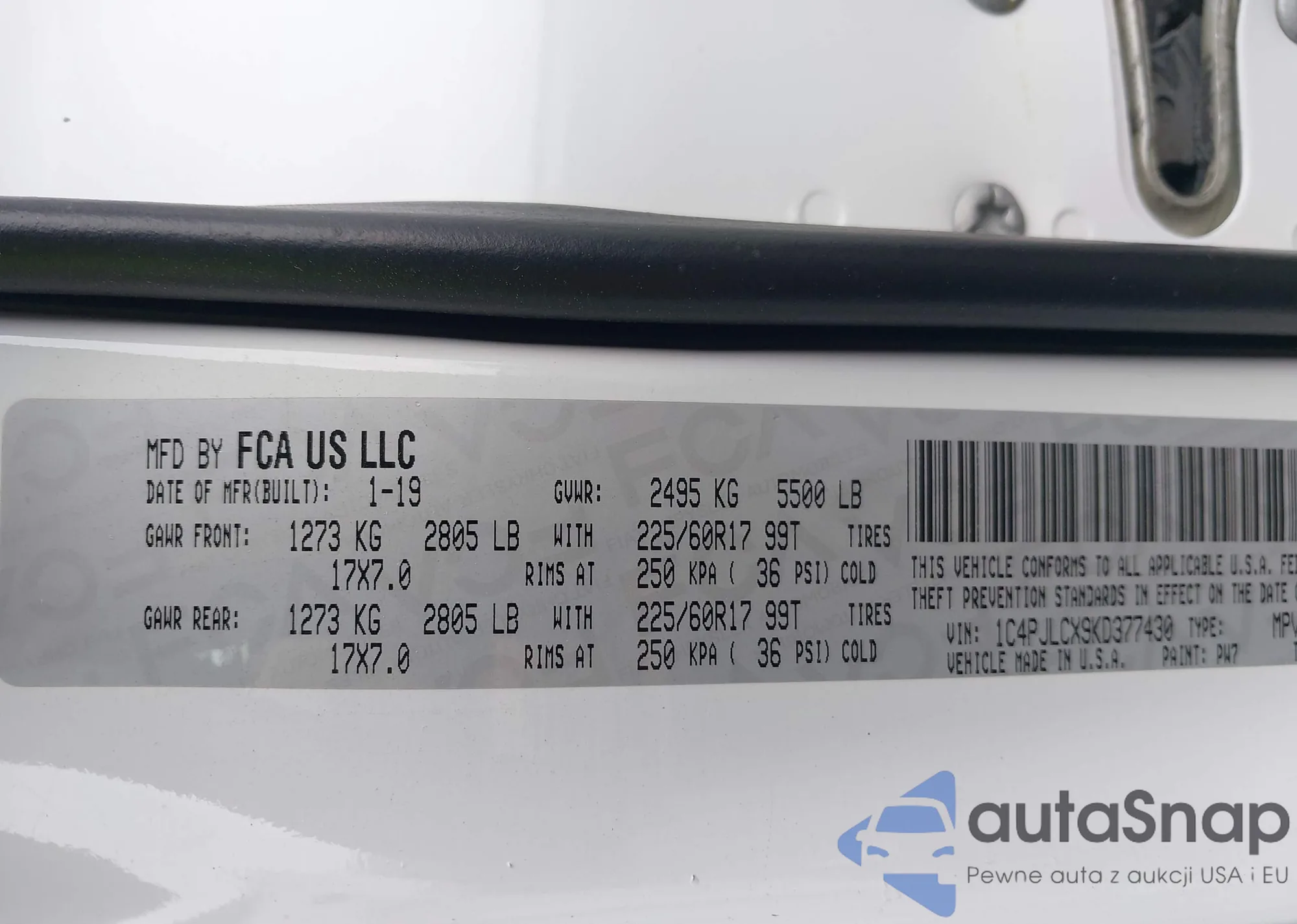 • VIN: 1C4PJLCX9KD377430
