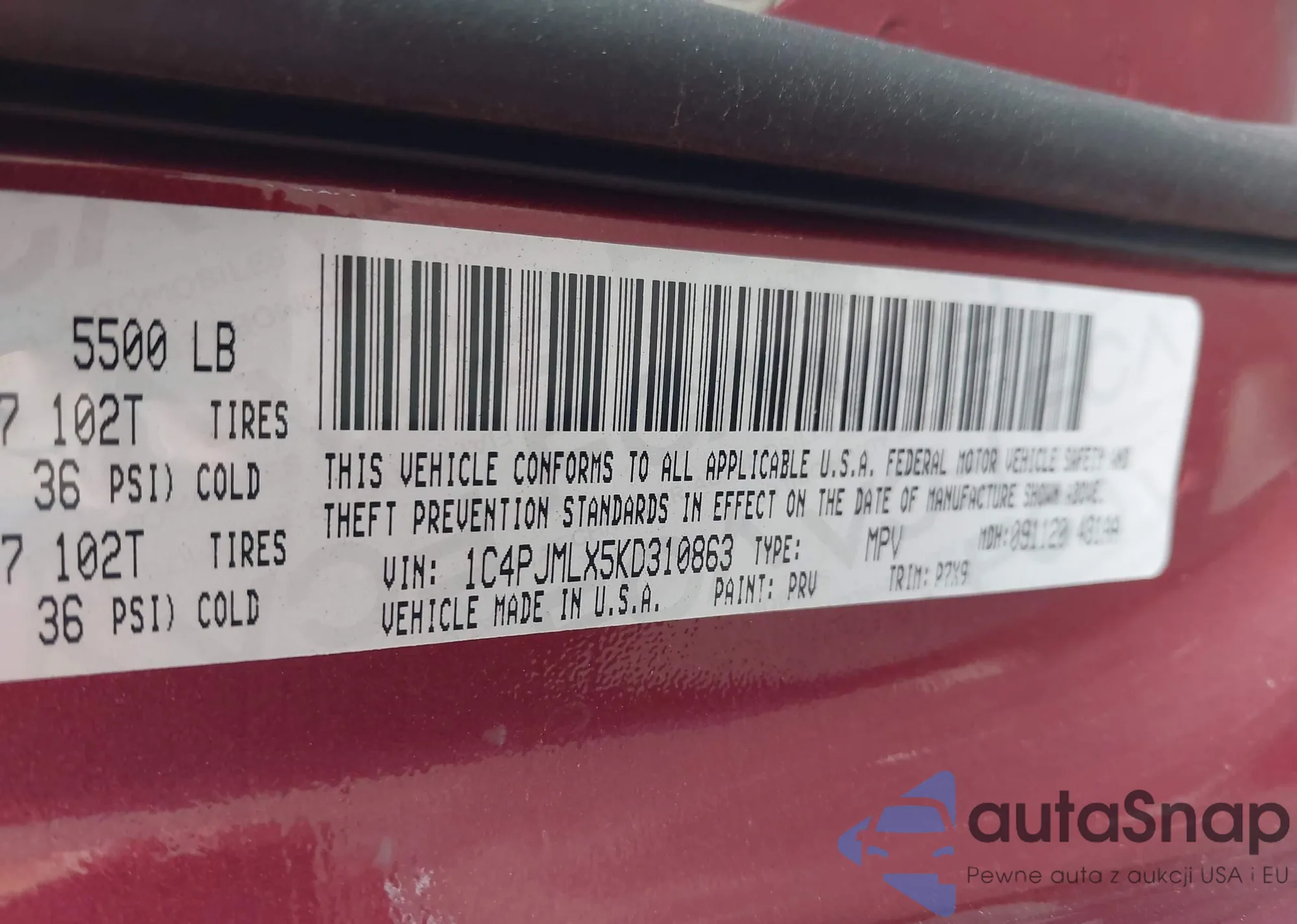 VIN: 1C4PJMLX5KD310863
