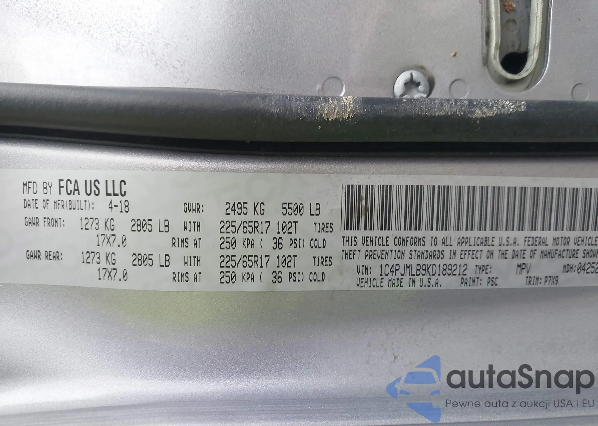 VIN: 1C4PJMLB9KD189212