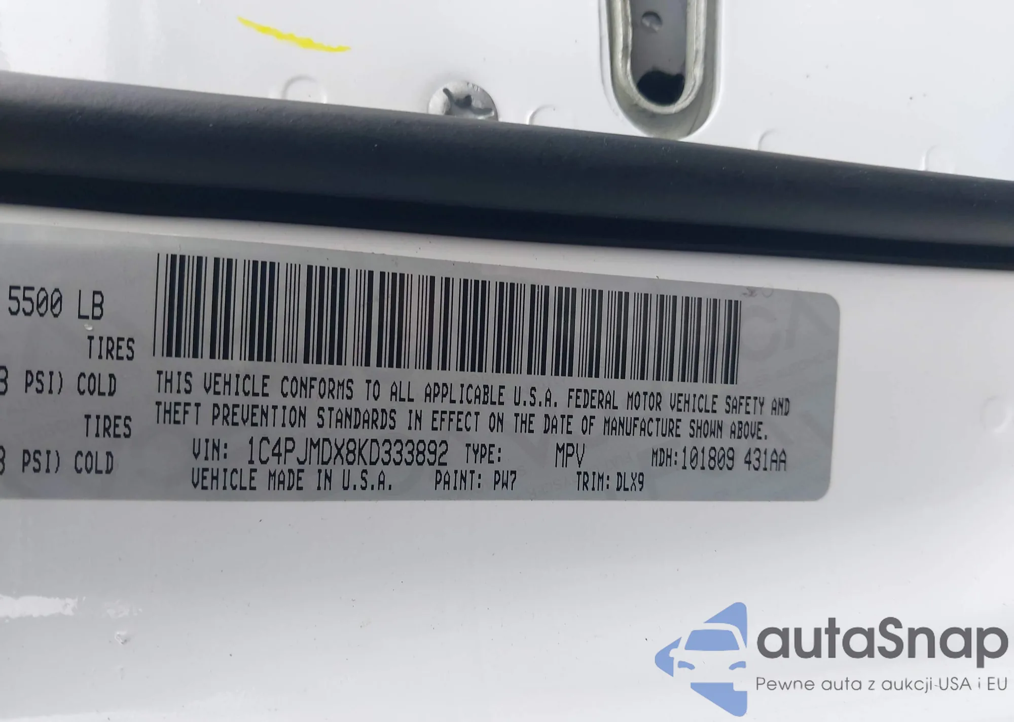 The car Jeep Cherokee 2019 (VIN 1C4PJMDX8KD333892) has not been auctioned before. The documents are clean, and the mileage matches or is below the market average. Sold by an insurance company – we recommend purchase. Delivery to the port will take approx. 6–8 weeks.