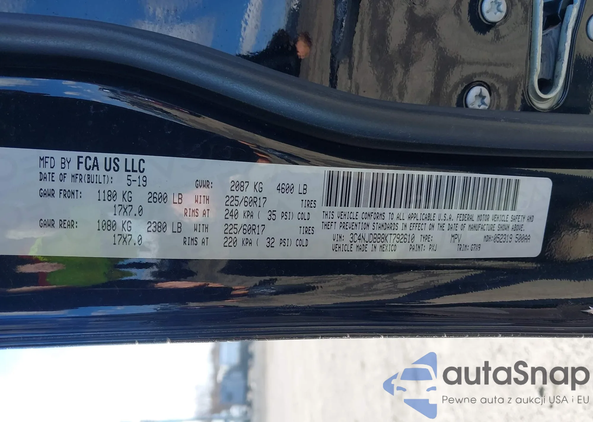 The car Jeep Compass 2019 (VIN 3C4NJDBB8KT792610) has not been auctioned before. The documents are clean, and the mileage matches or is below the market average. Sold by an insurance company – we recommend purchase. Delivery to the port will take approx. 6–8 weeks.