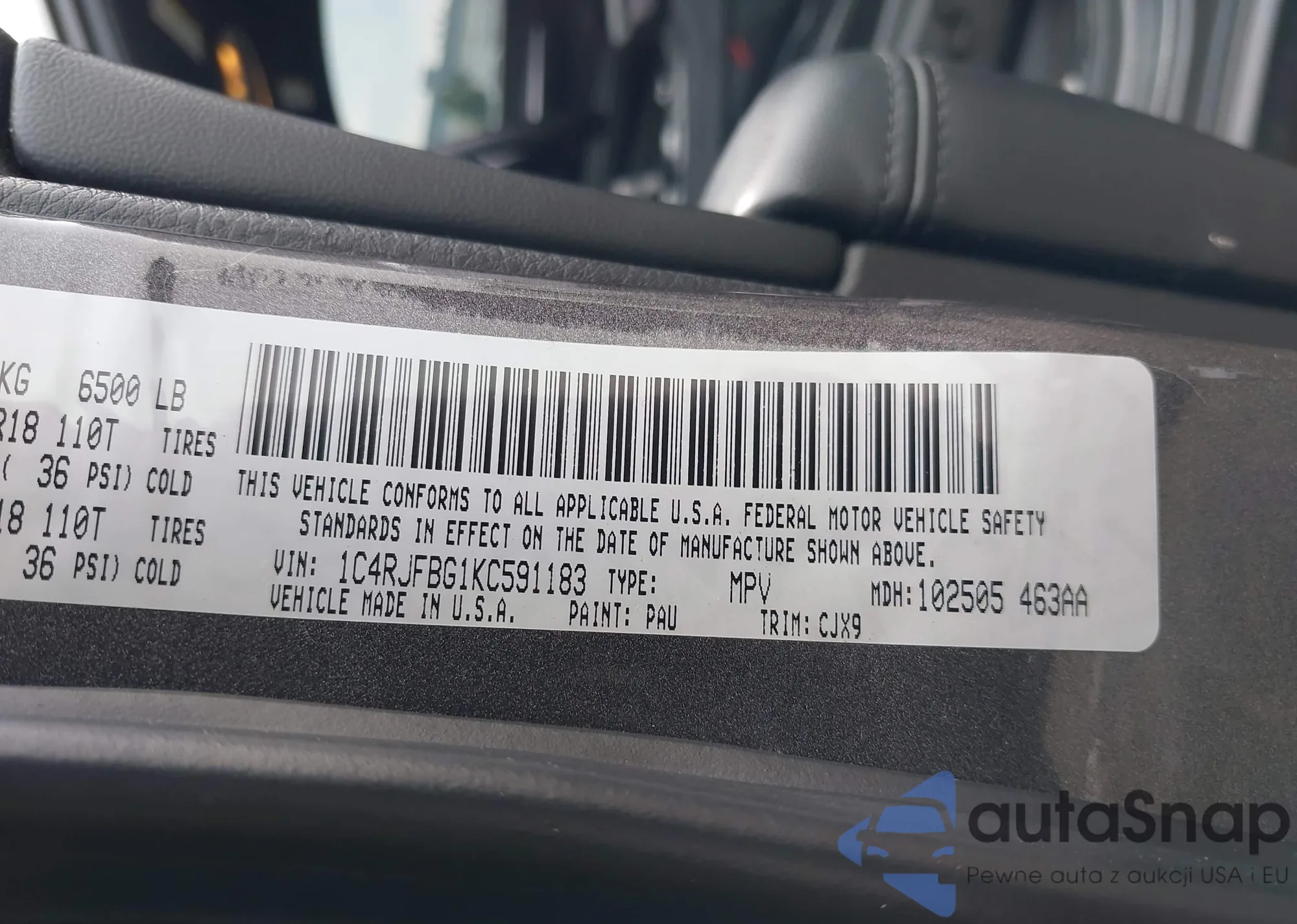 VIN: 1C4RJFBG1KC591183