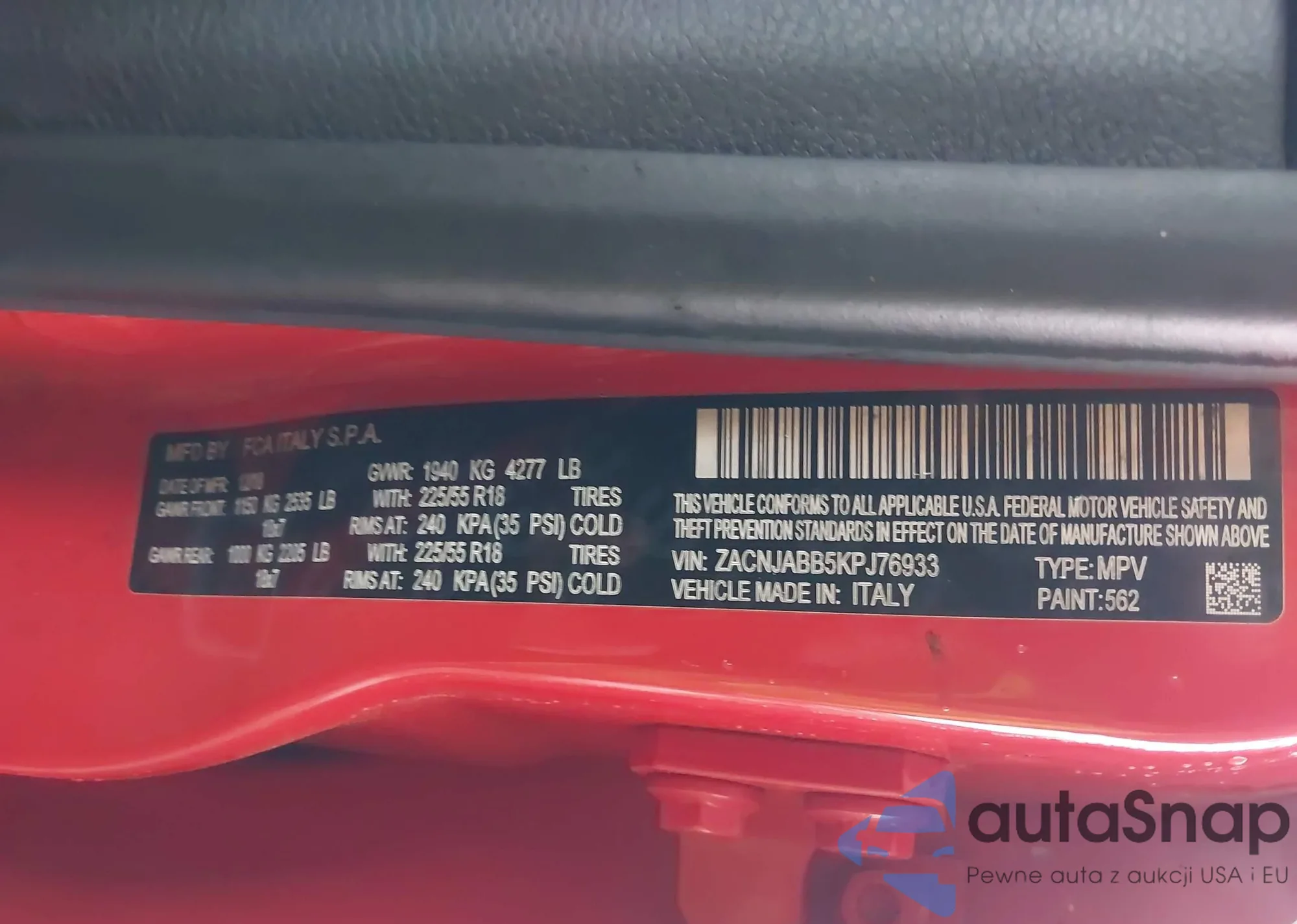 The car Jeep Renegade 2019 (VIN ZACNJABB5KPJ76933) is sold by an unverified seller. We recommend checking the Carfax report and confirming registration possibilities before purchase.