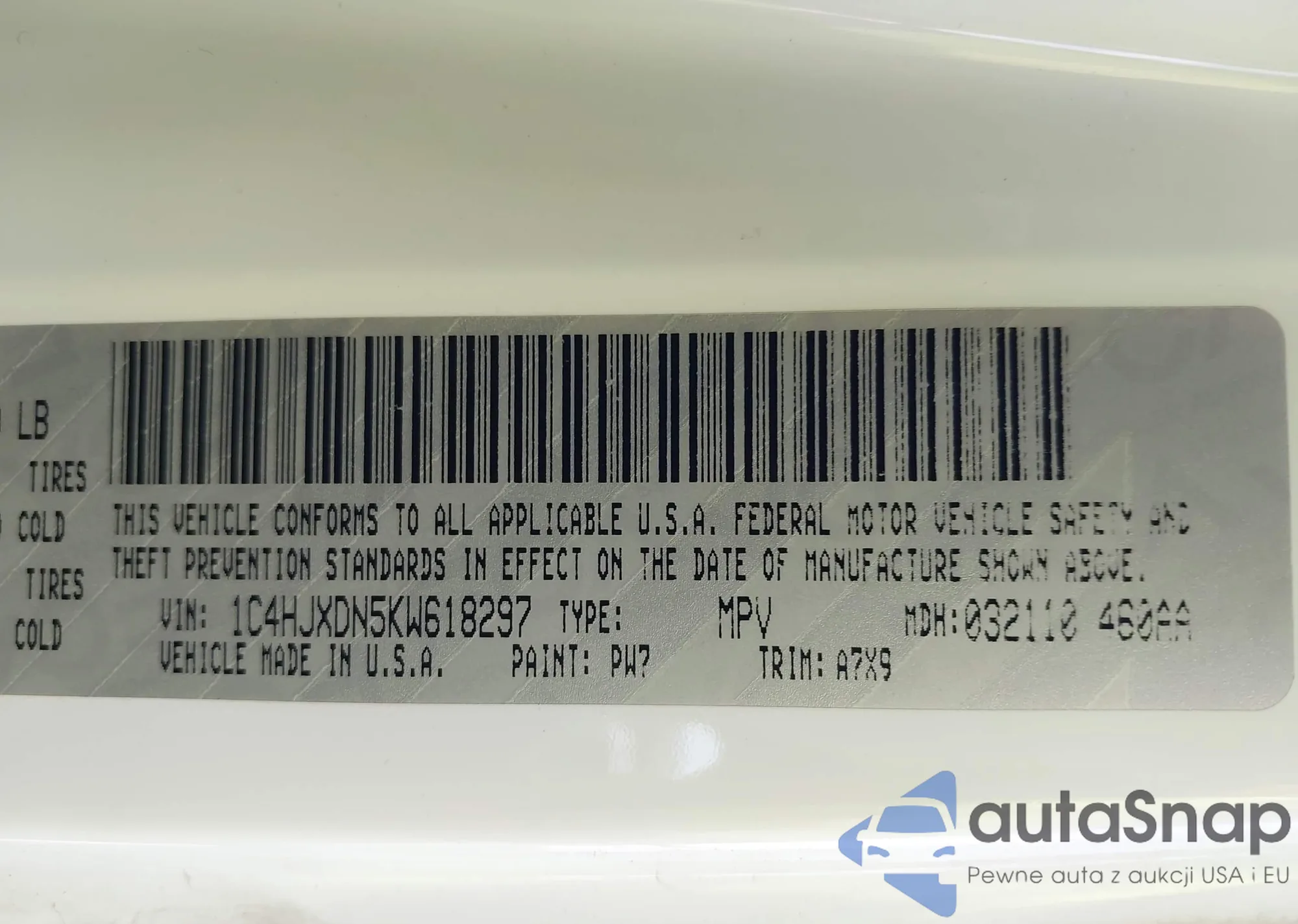VIN: 1C4HJXDN5KW618297