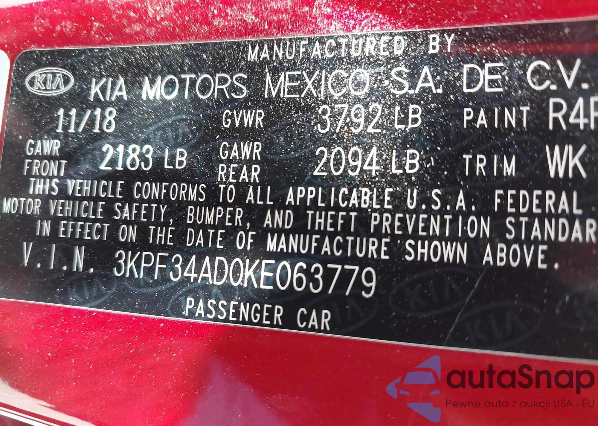 VIN: 3KPF34AD0KE063779