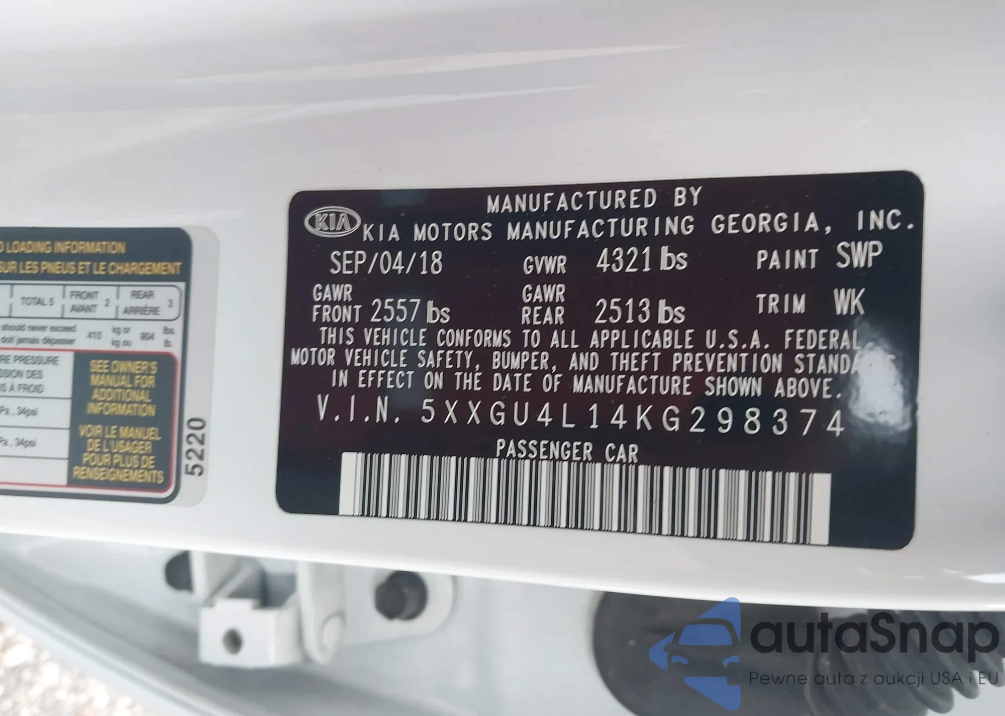 VIN: 5XXGU4L14KG298374