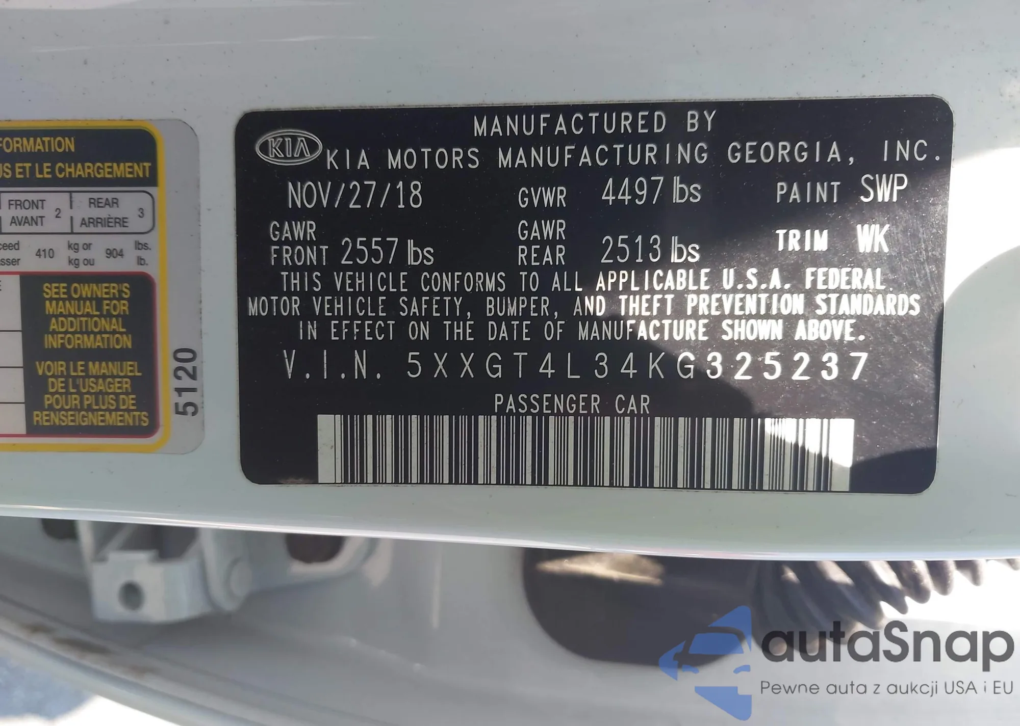 VIN: 5XXGT4L34KG325237