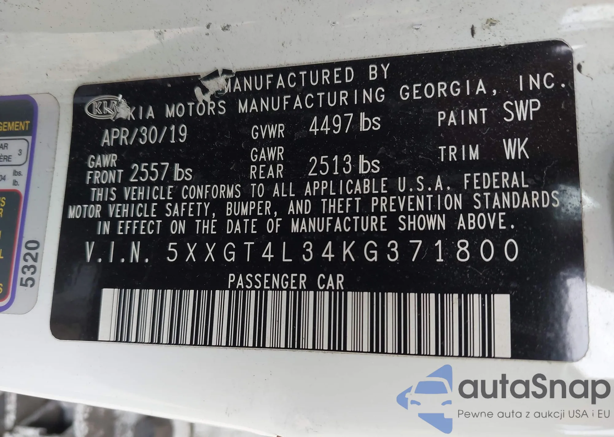 VIN: 5XXGT4L34KG371800