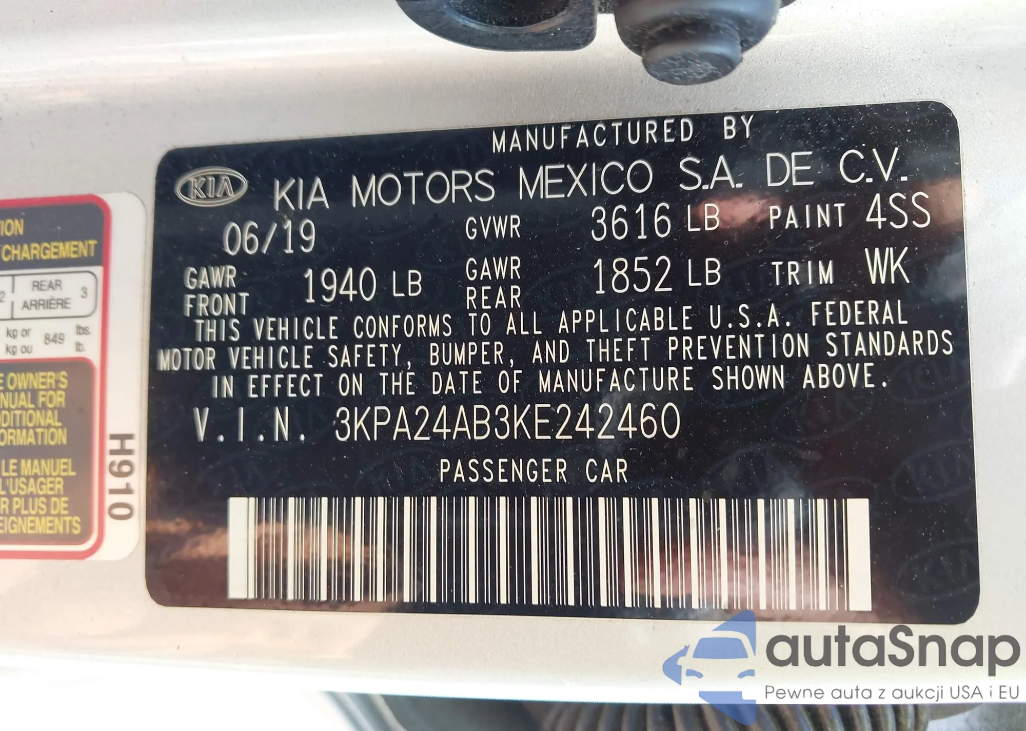 The car Kia Rio 2019 (VIN 3KPA24AB3KE242460) has already been auctioned 1 times and/or is sold by an unverified seller. We recommend checking the Carfax report and confirming registration possibilities before purchase.