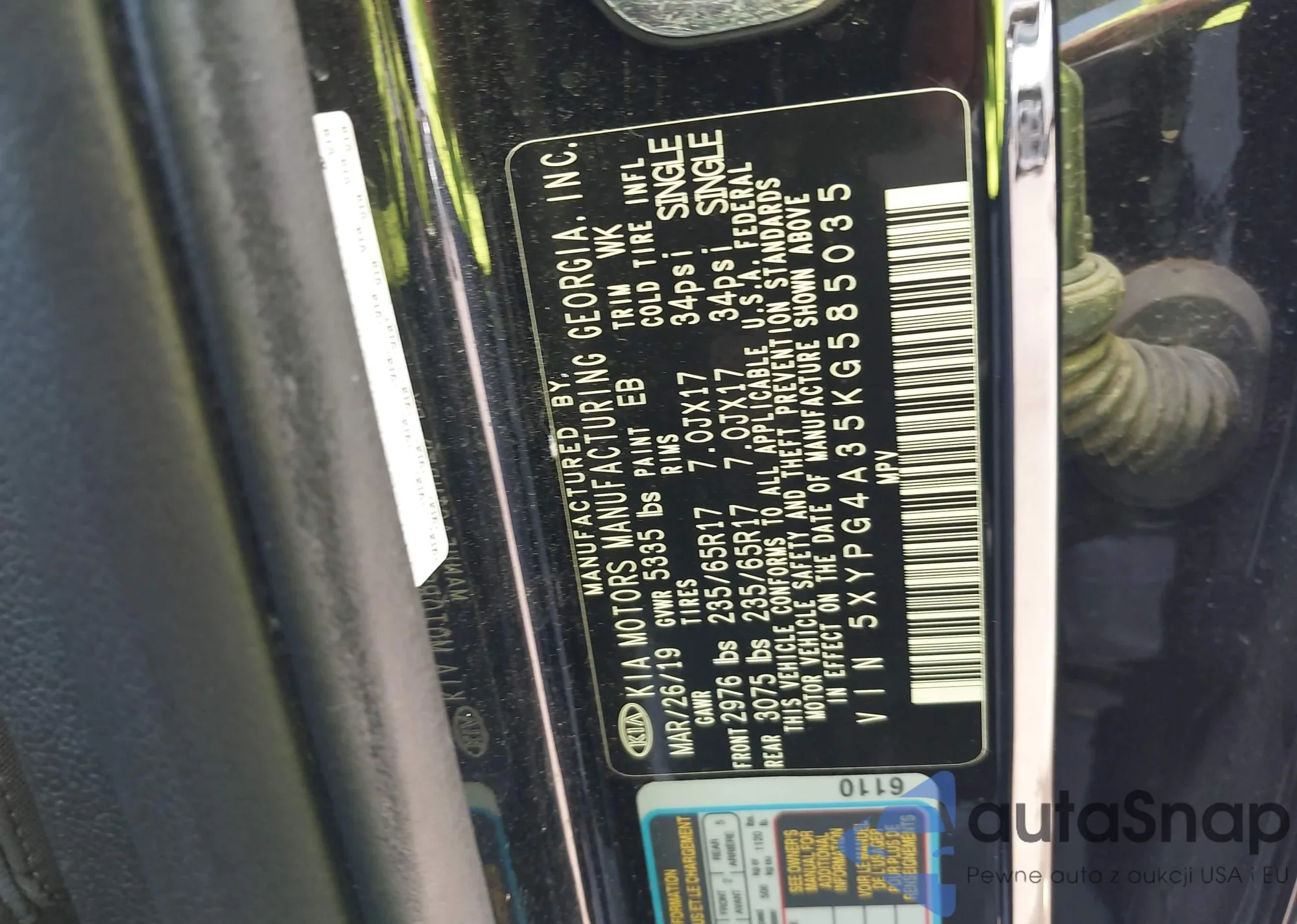 VIN: 5XYPG4A35KG585035
