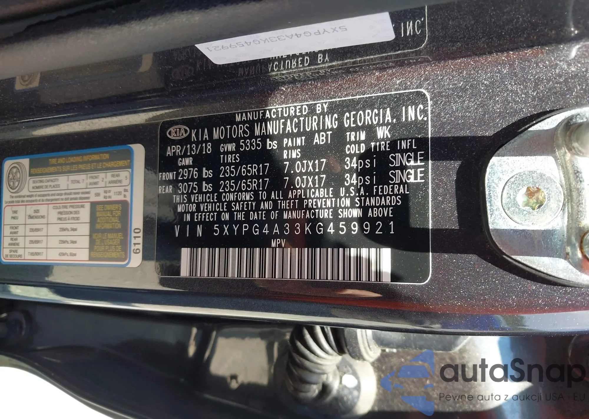 VIN: 5XYPG4A33KG459921