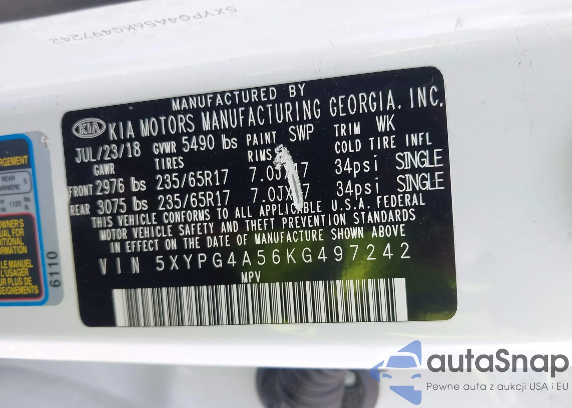 VIN: 5XYPG4A56KG497242