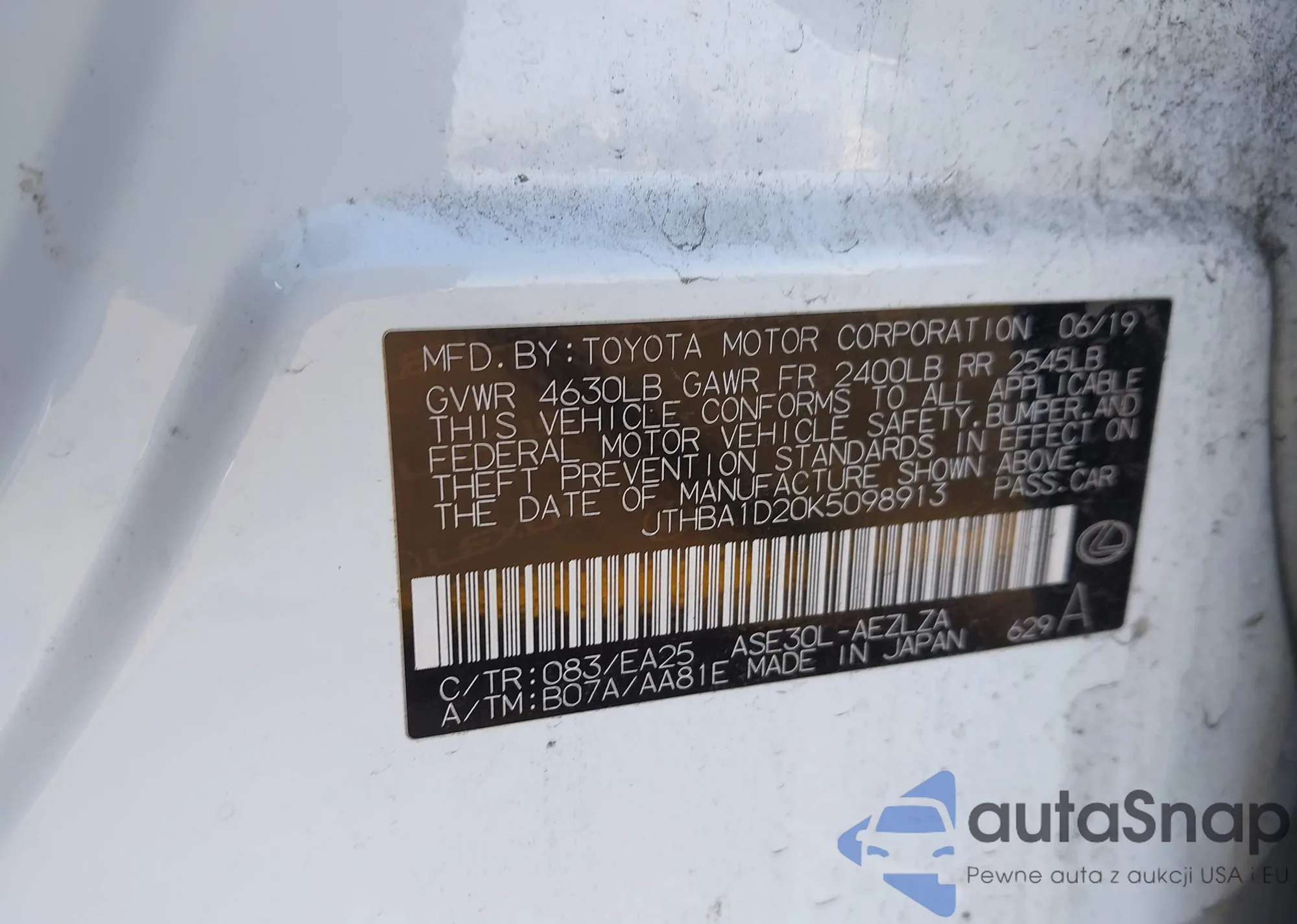 JTHBA1D20K5098913 IAAI