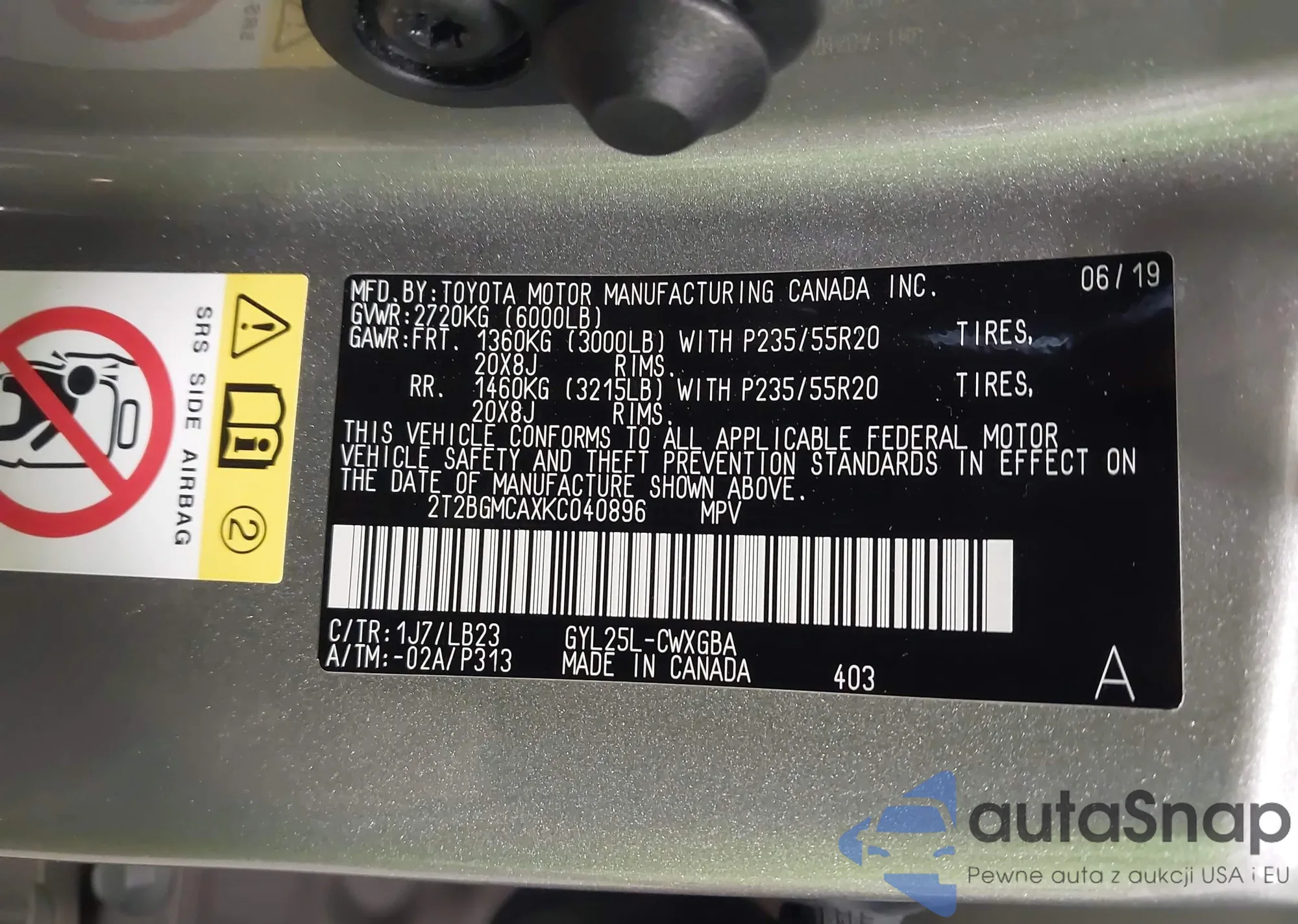 VIN: 2T2BGMCAXKC040896