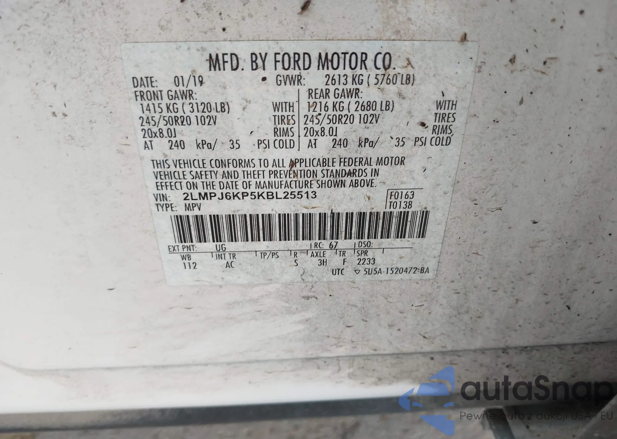 VIN: 2LMPJ6KP5KBL25513