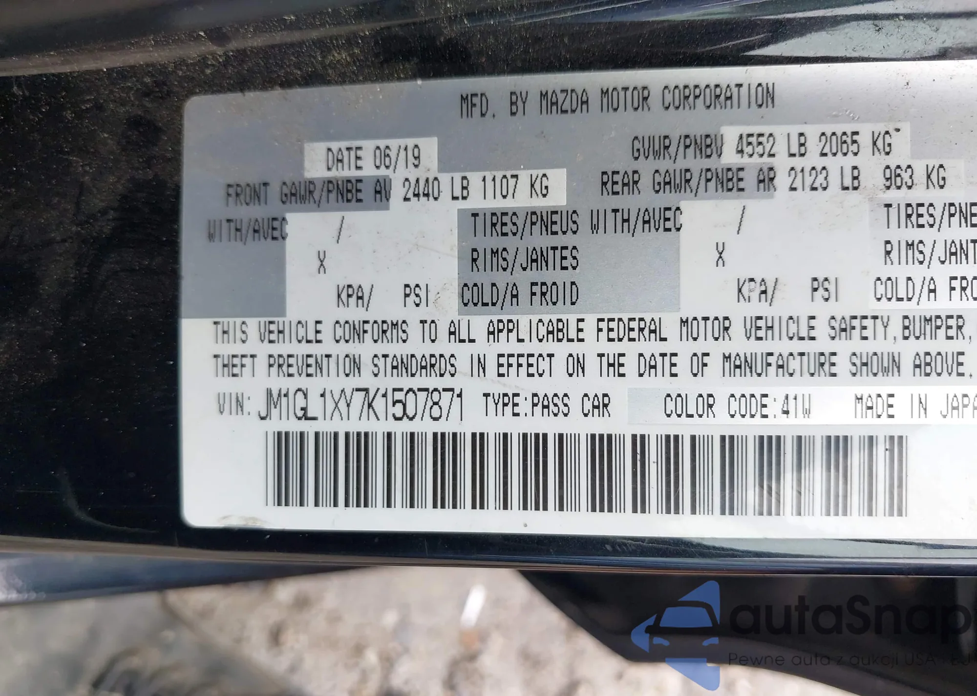 VIN: JM1GL1XY7K1507871
