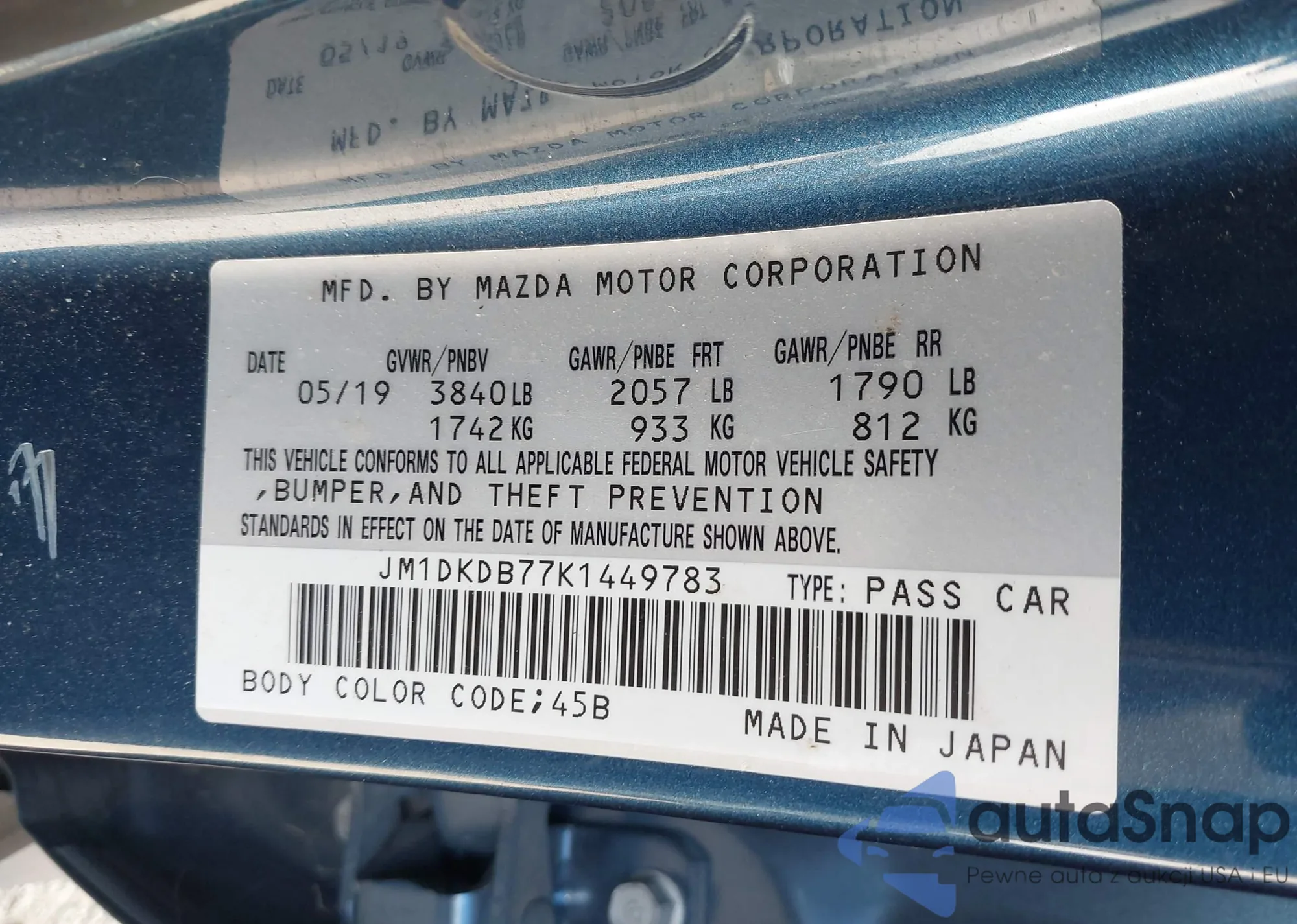 • VIN: JM1DKDB77K1449783