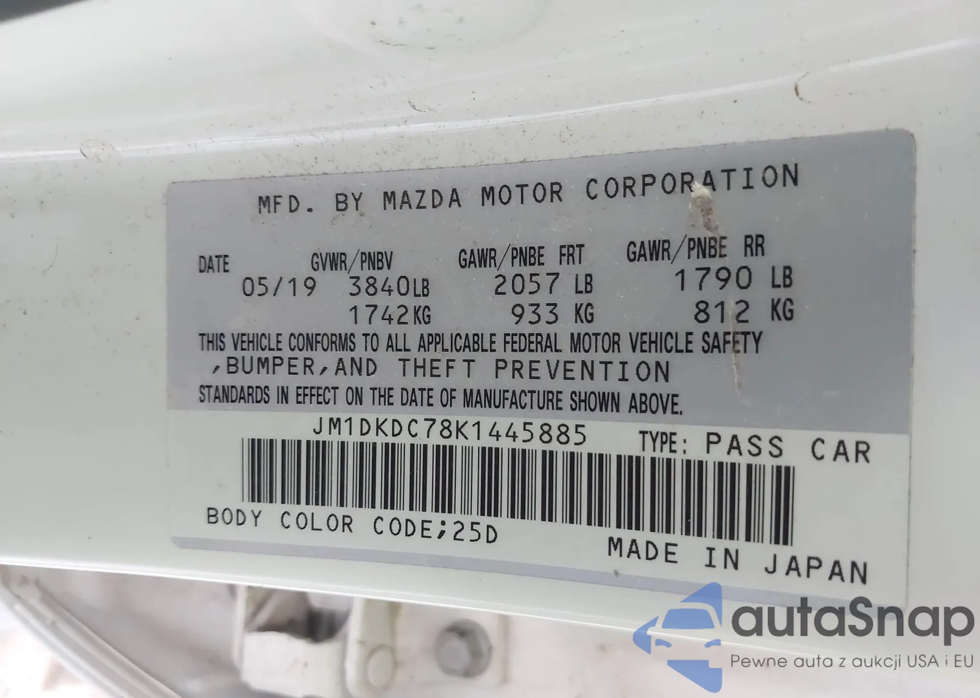 VIN: JM1DKDC78K1445885