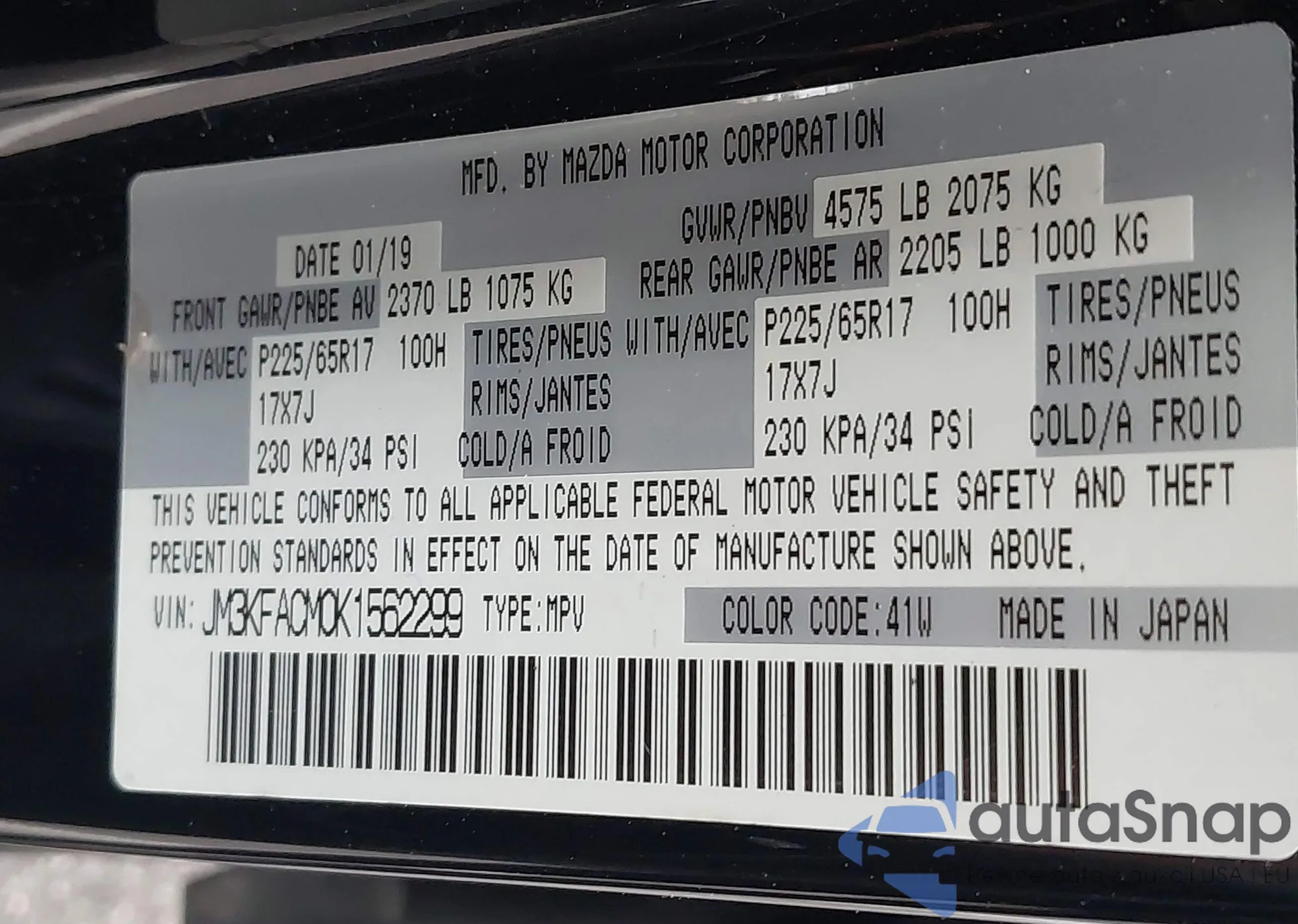 VIN: JM3KFACM0K1562299
