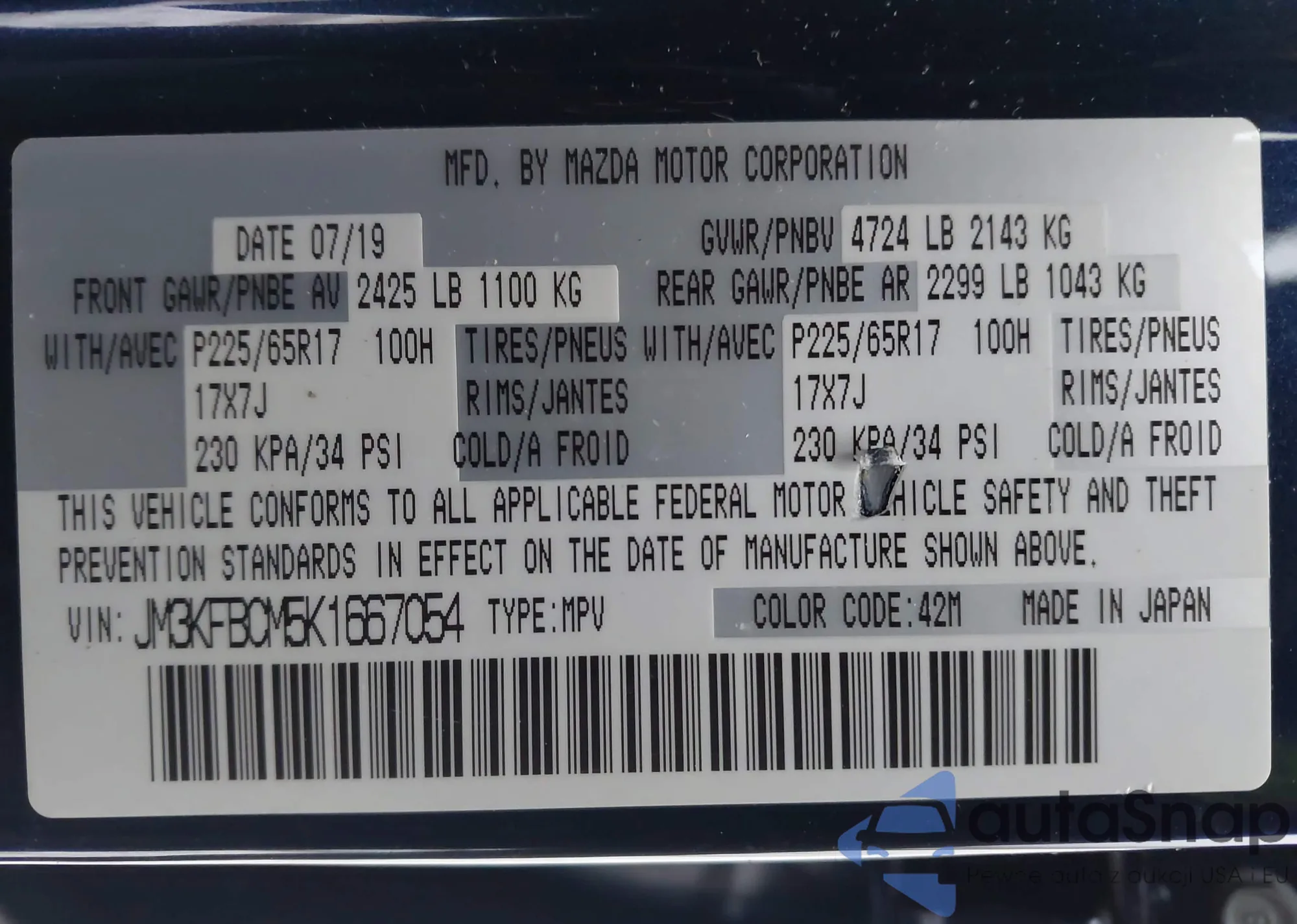 • VIN: JM3KFBCM5K1667054