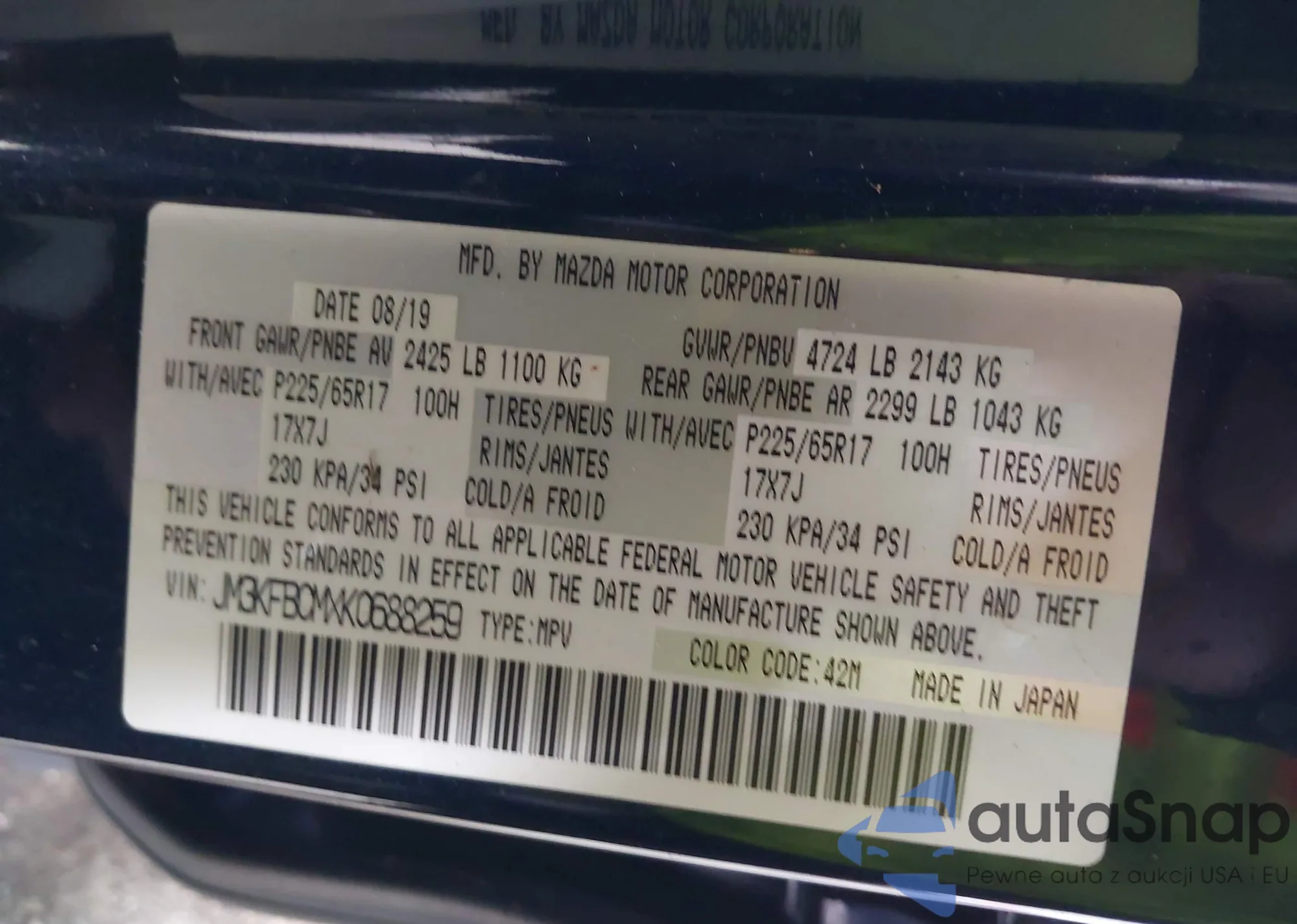 VIN: JM3KFBCMXK0688259