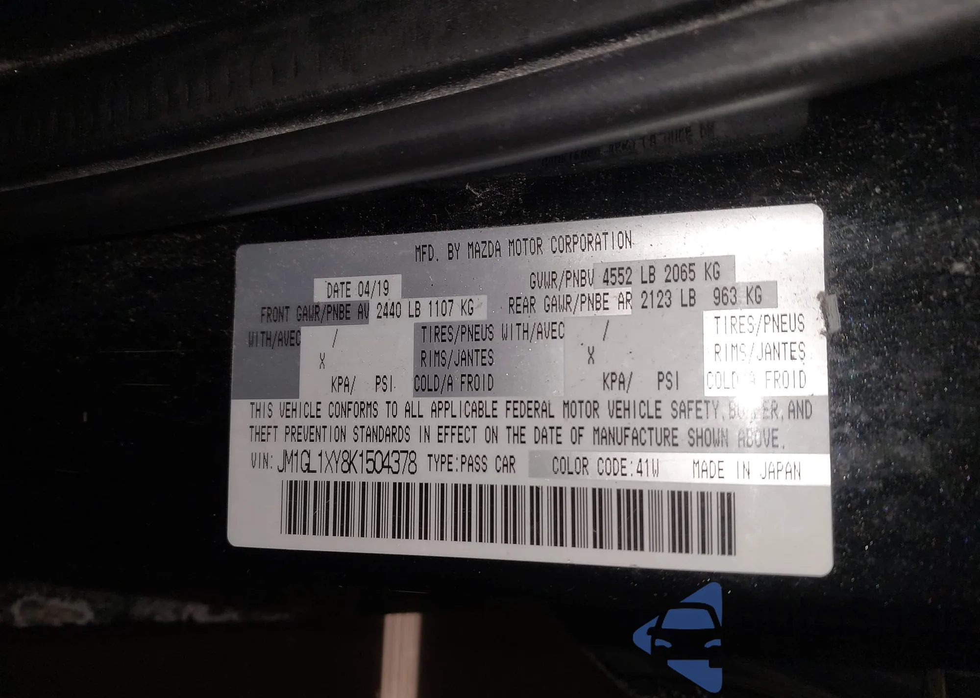 VIN: JM1GL1XY8K1504378