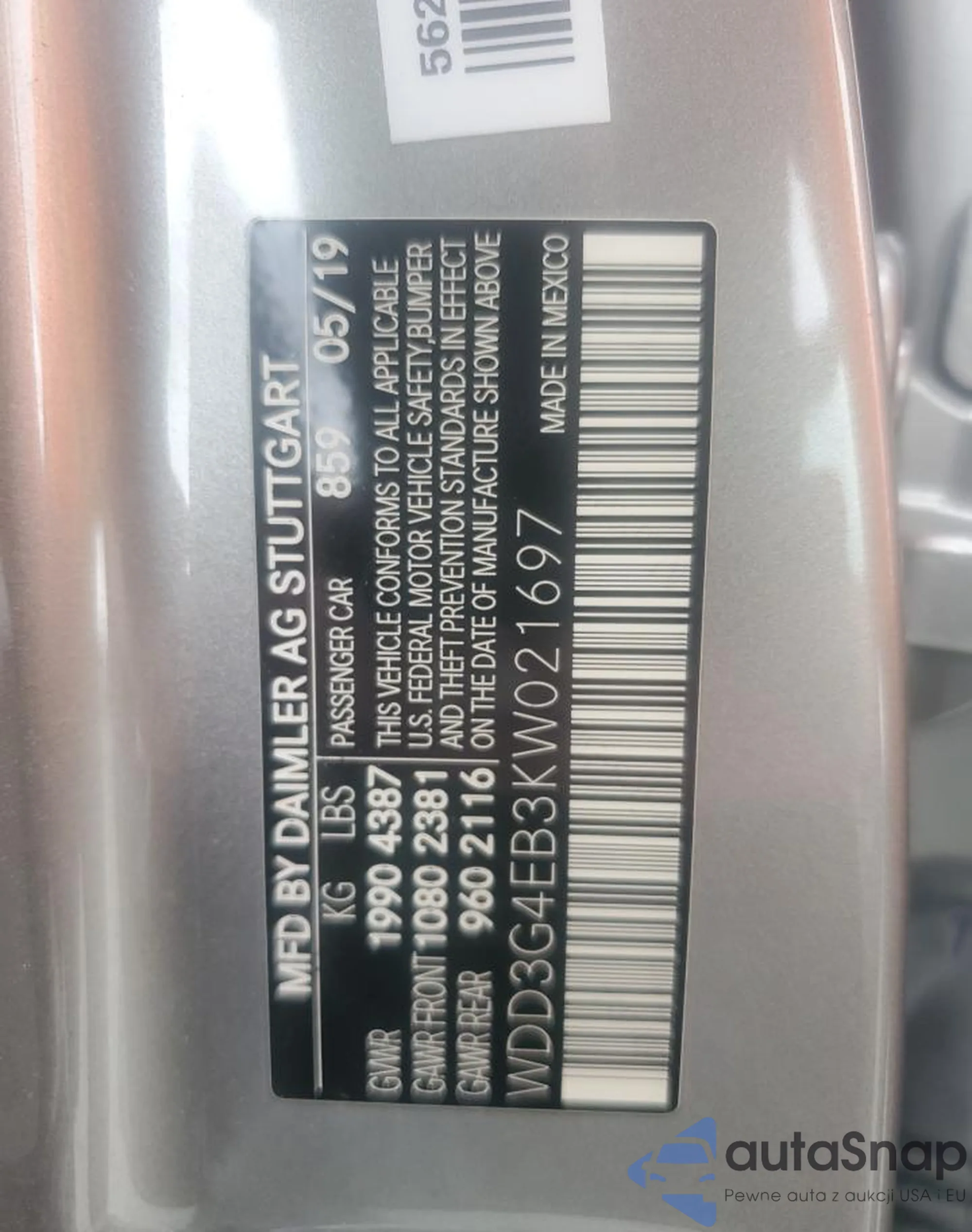 VIN: WDD3G4EB3KW021697