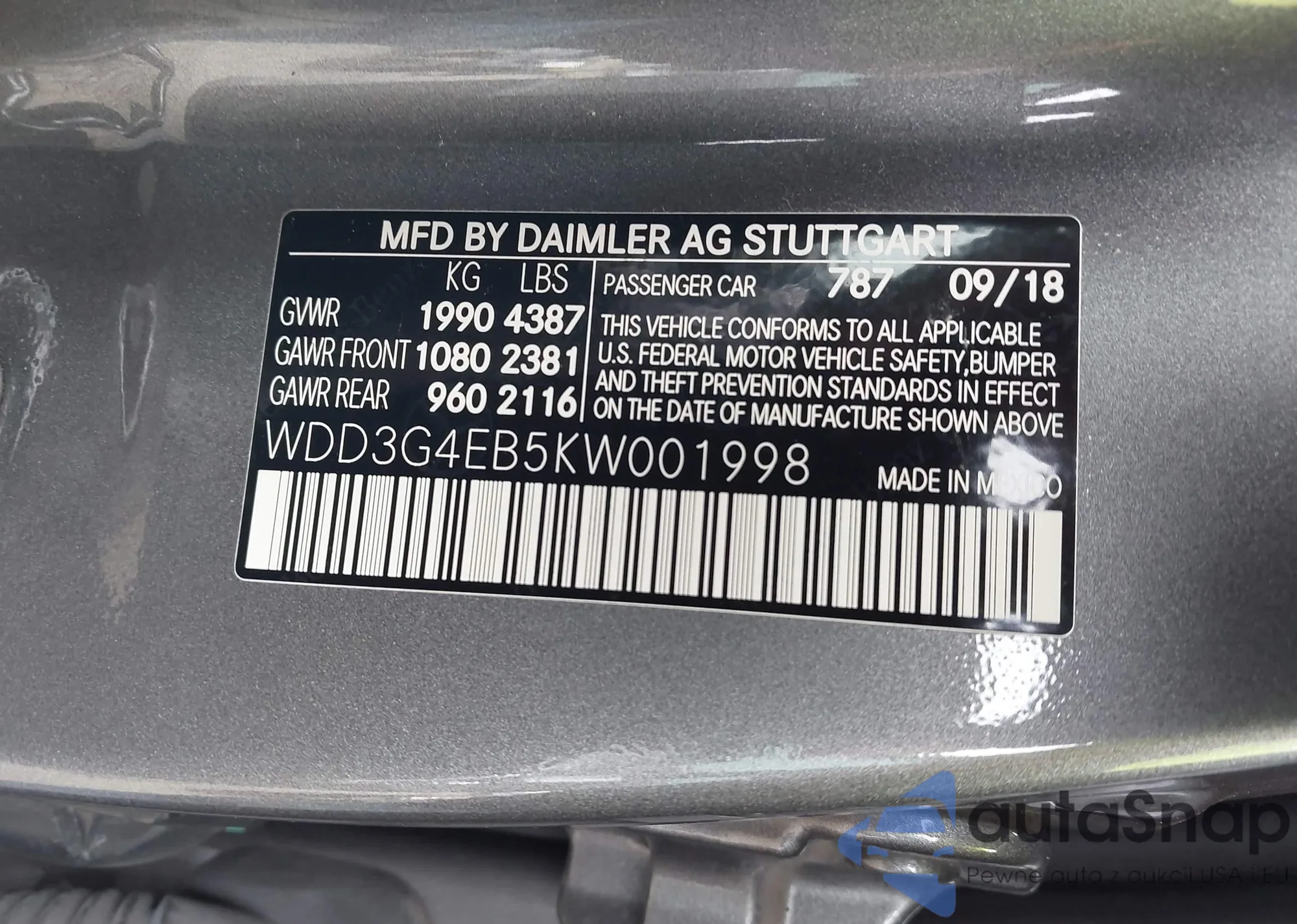 The car Mercedes-Benz A-klasse 2019 (VIN WDD3G4EB5KW001998) has not been auctioned before. The documents are clean, and the mileage matches or is below the market average. Sold by an insurance company – we recommend purchase. Delivery to the port will take approx. 6–8 weeks.