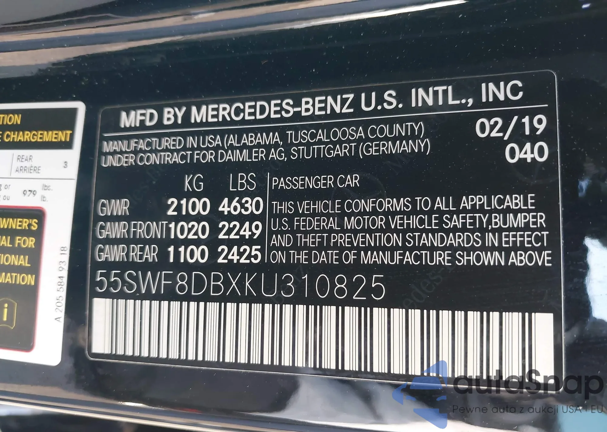 • VIN: 55SWF8DBXKU310825