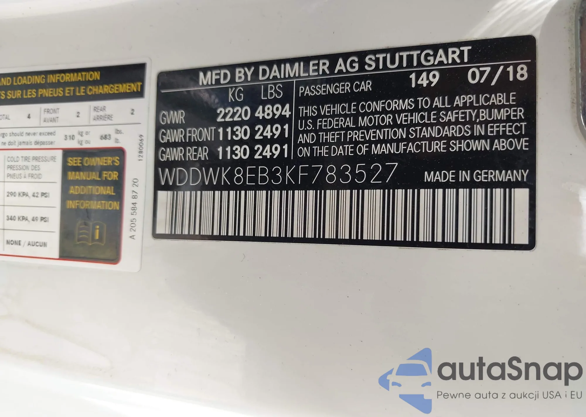 VIN: WDDWK8EB3KF783527