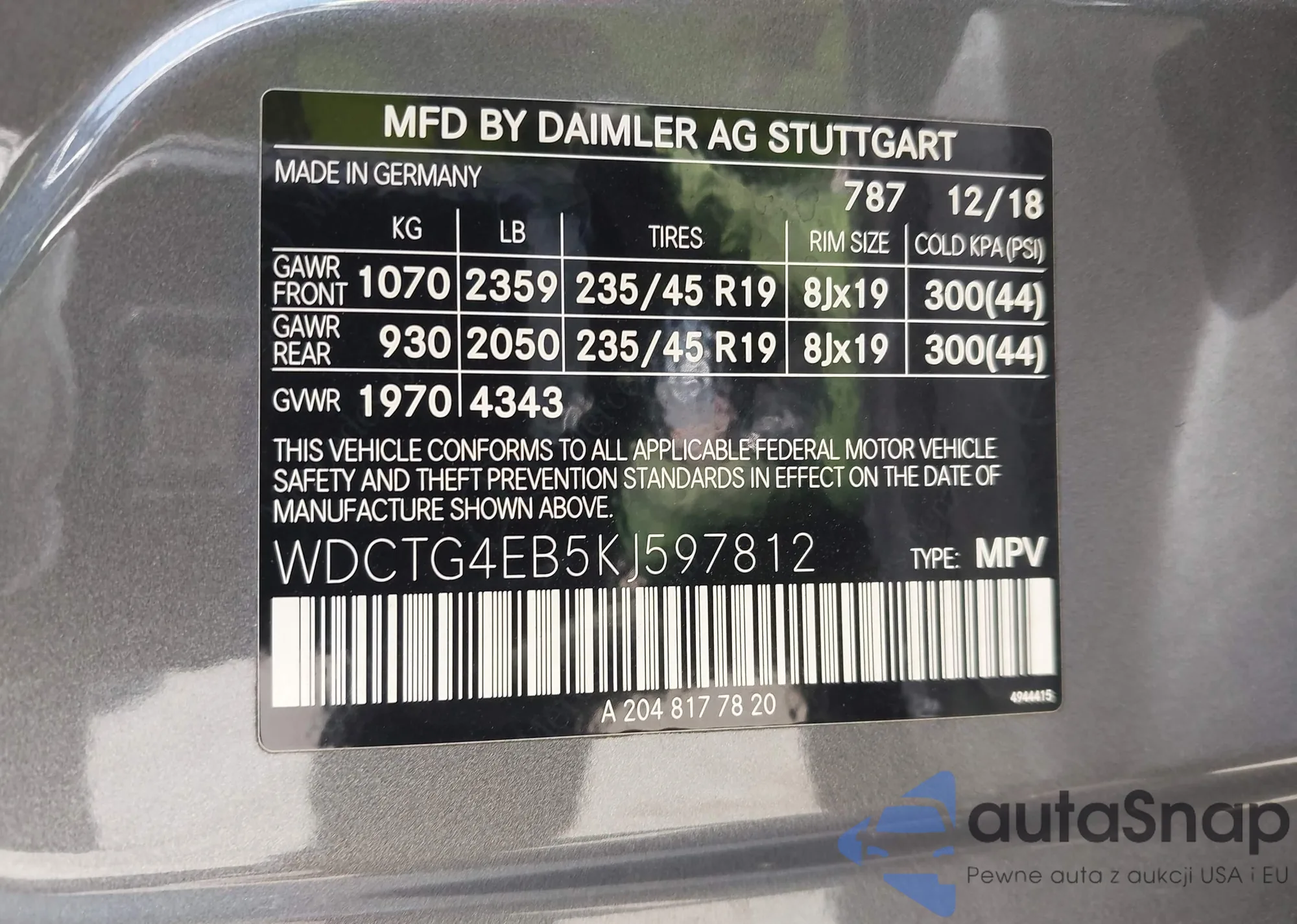 VIN: WDCTG4EB5KJ597812