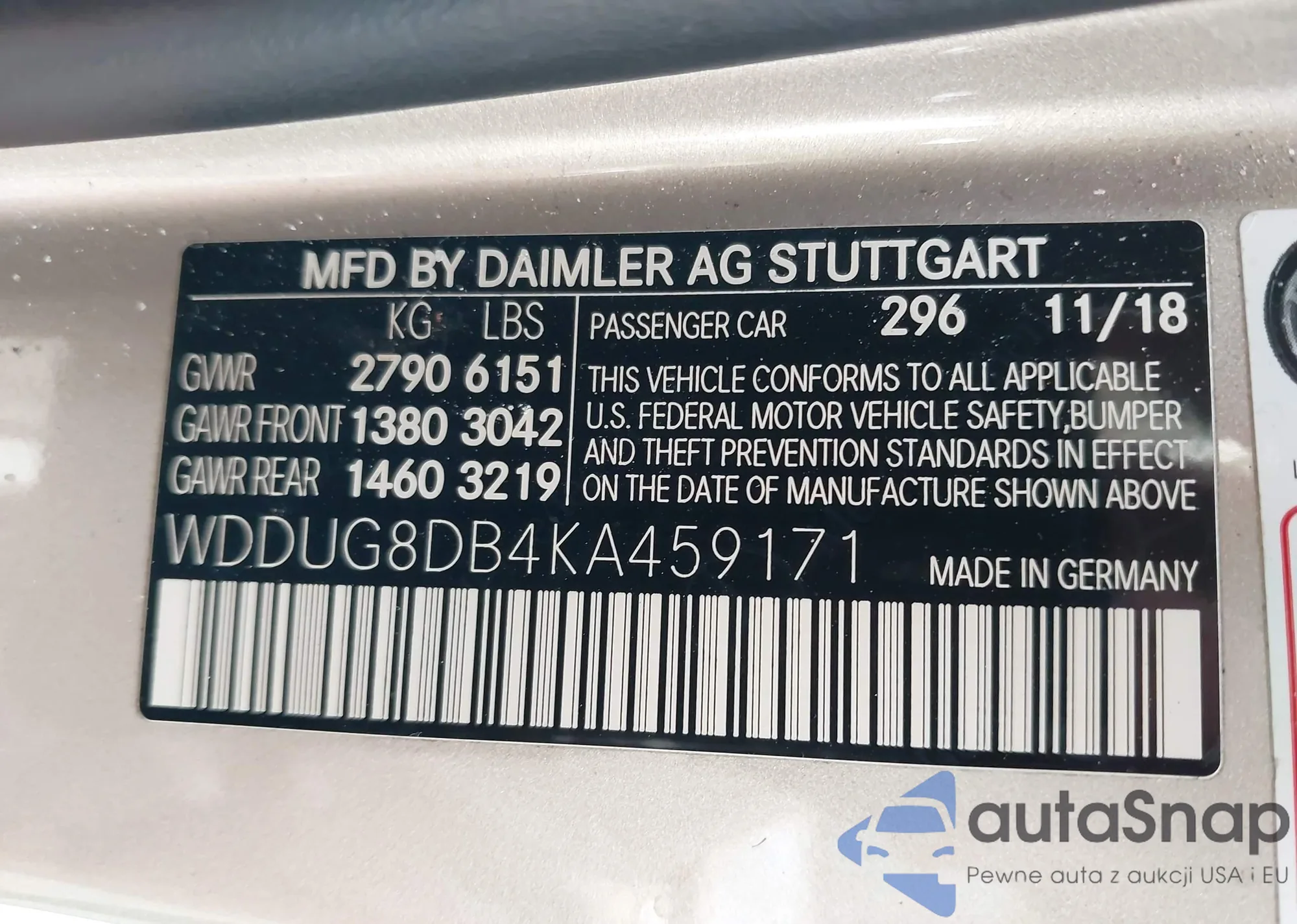• VIN: WDDUG8DB4KA459171