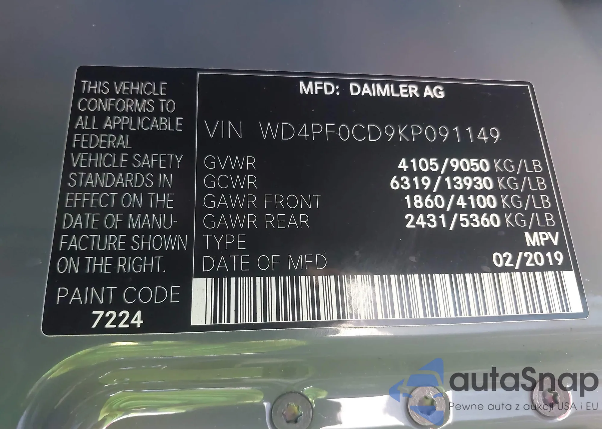 VIN: WD4PF0CD9KP091149