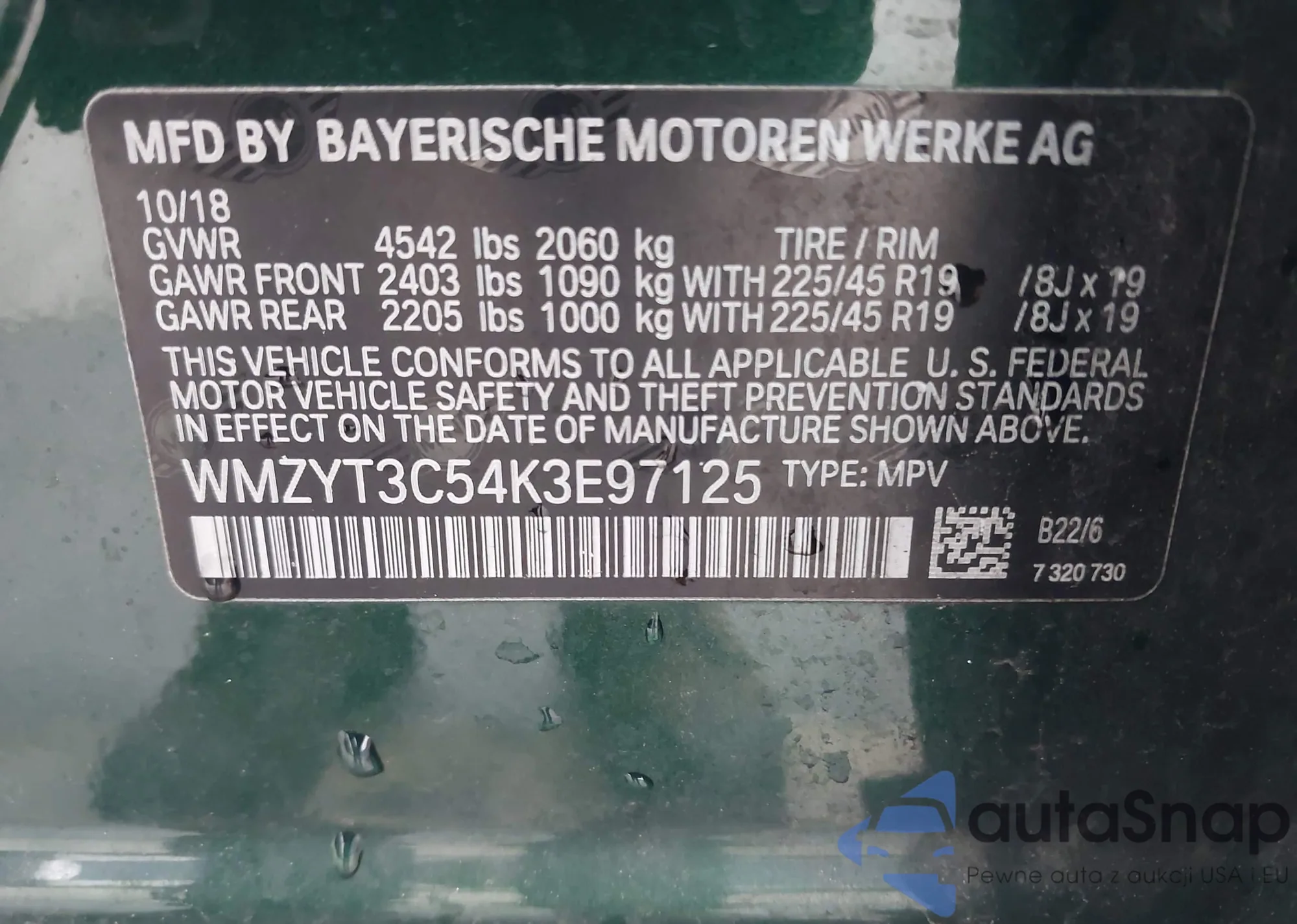 The car MINI Countryman 2019 (VIN WMZYT3C54K3E97125) has documents that prevent registration. Export and registration may be difficult. Contact AutaSnap experts to find alternatives.