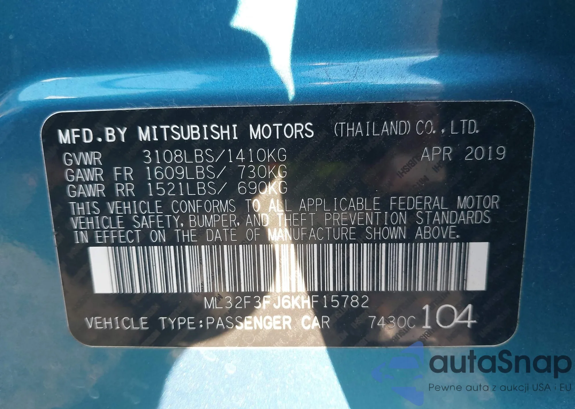 • VIN: ML32F3FJ6KHF15782