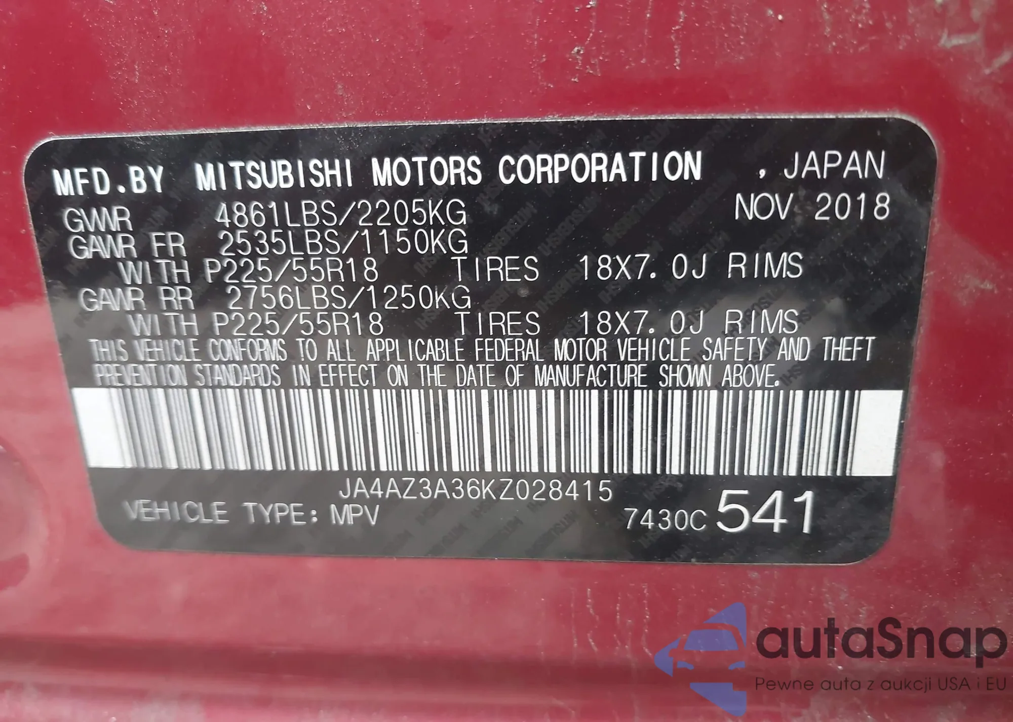 VIN: JA4AZ3A36KZ028415