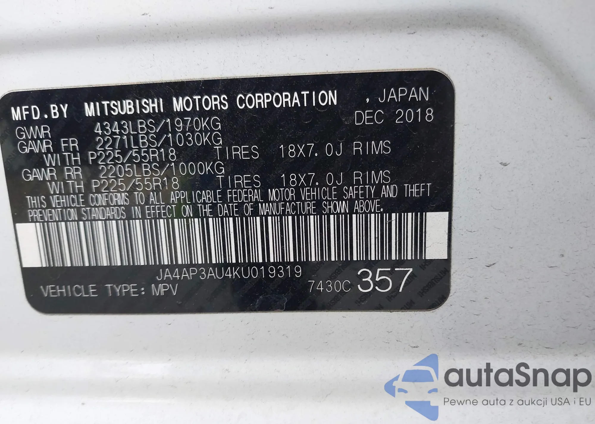 VIN: JA4AP3AU4KU019319