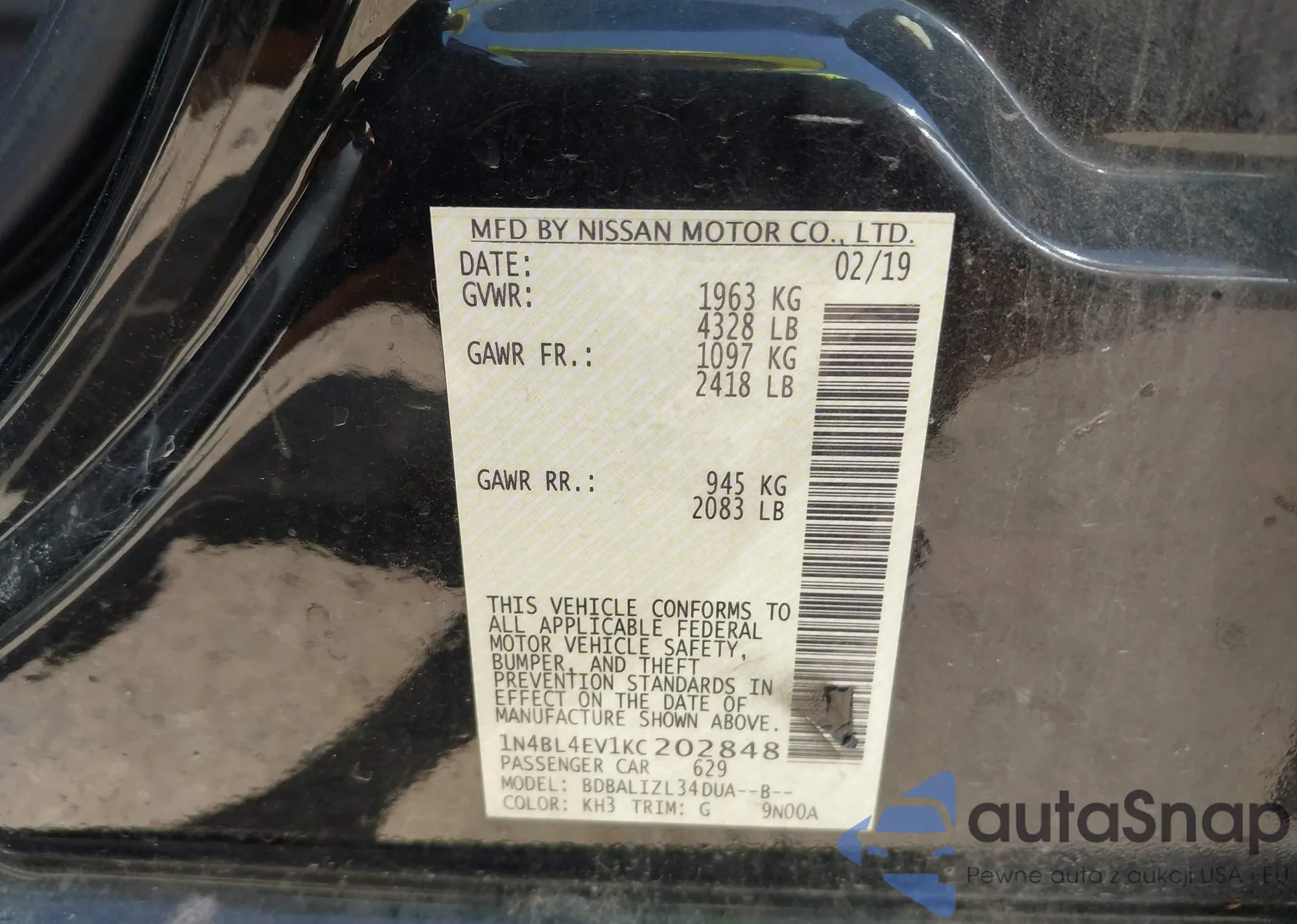 VIN: 1N4BL4EV1KC202848