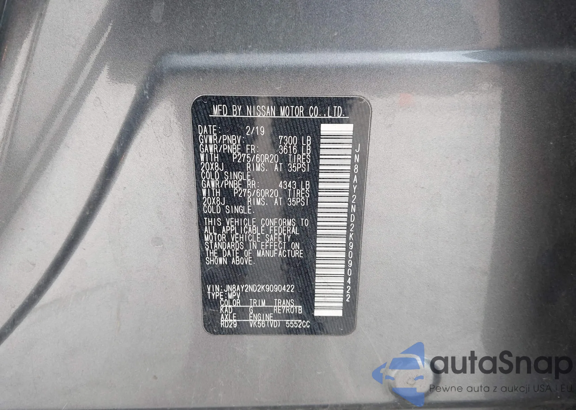 VIN: JN8AY2ND2K9090422