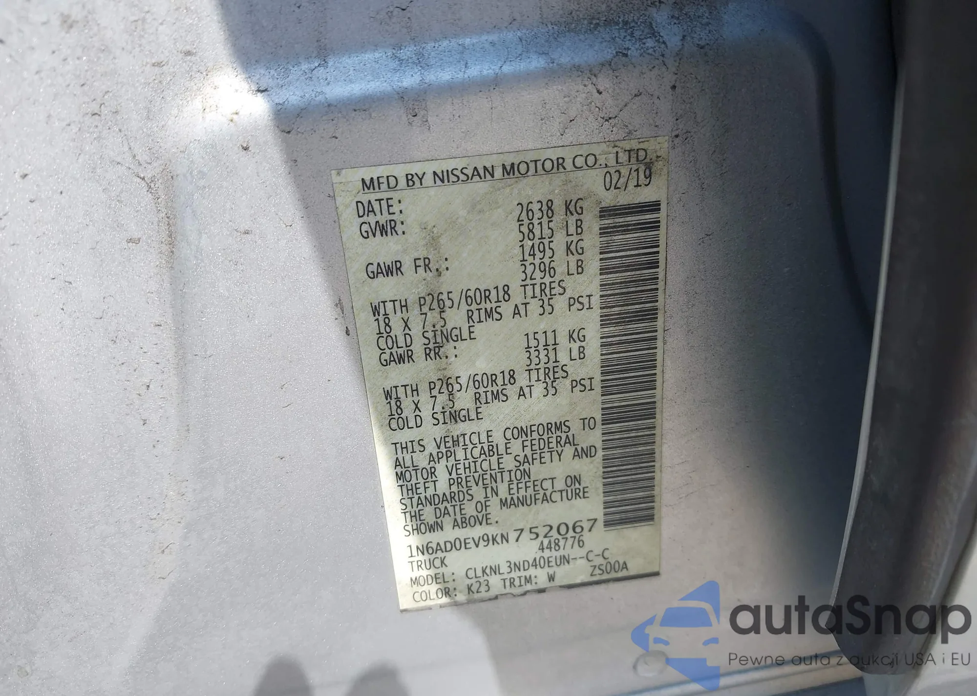 VIN: 1N6AD0EV9KN752067