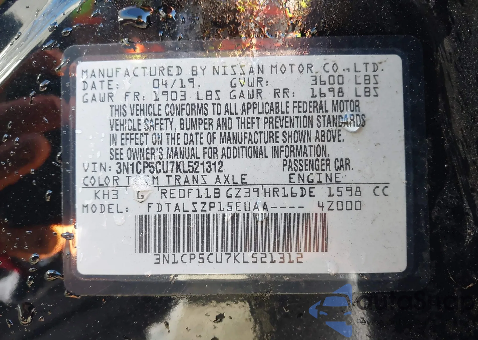 The car Nissan Kicks 2019 (VIN 3N1CP5CU7KL521312) has not been auctioned before. The documents are clean, and the mileage matches or is below the market average. Sold by an insurance company – we recommend purchase. Delivery to the port will take approx. 6–8 weeks.