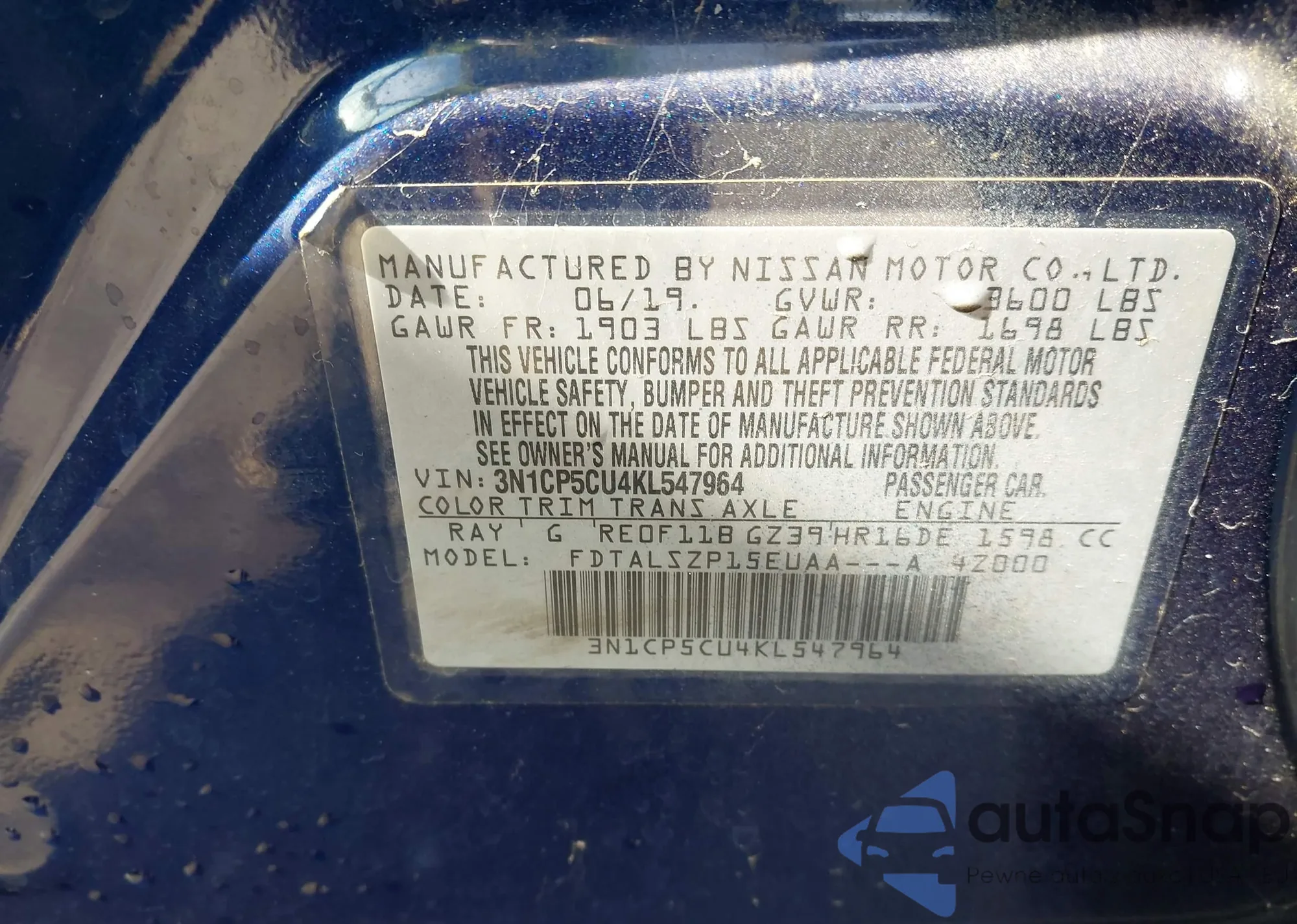 • VIN: 3N1CP5CU4KL547964