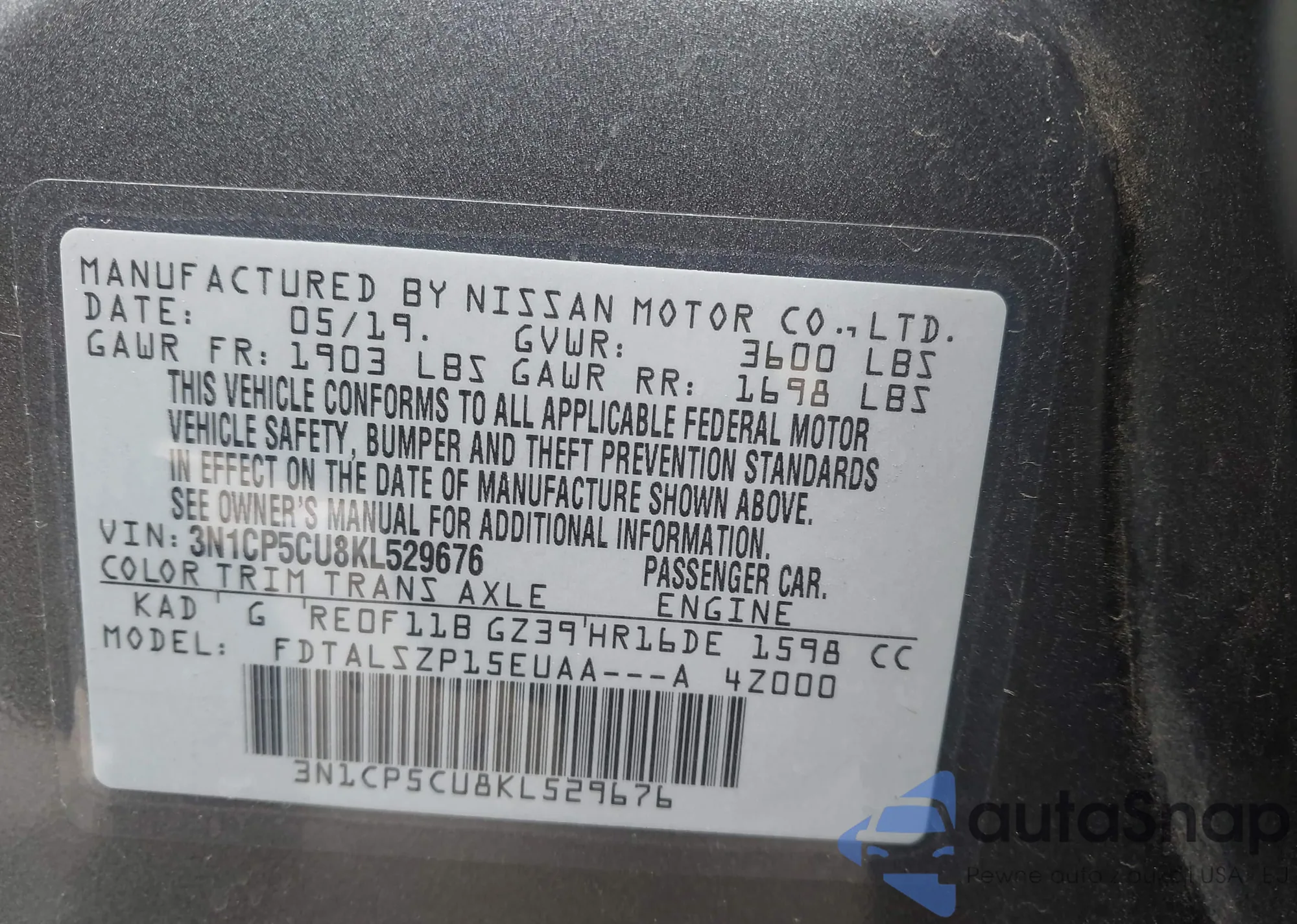 VIN: 3N1CP5CU8KL529676
